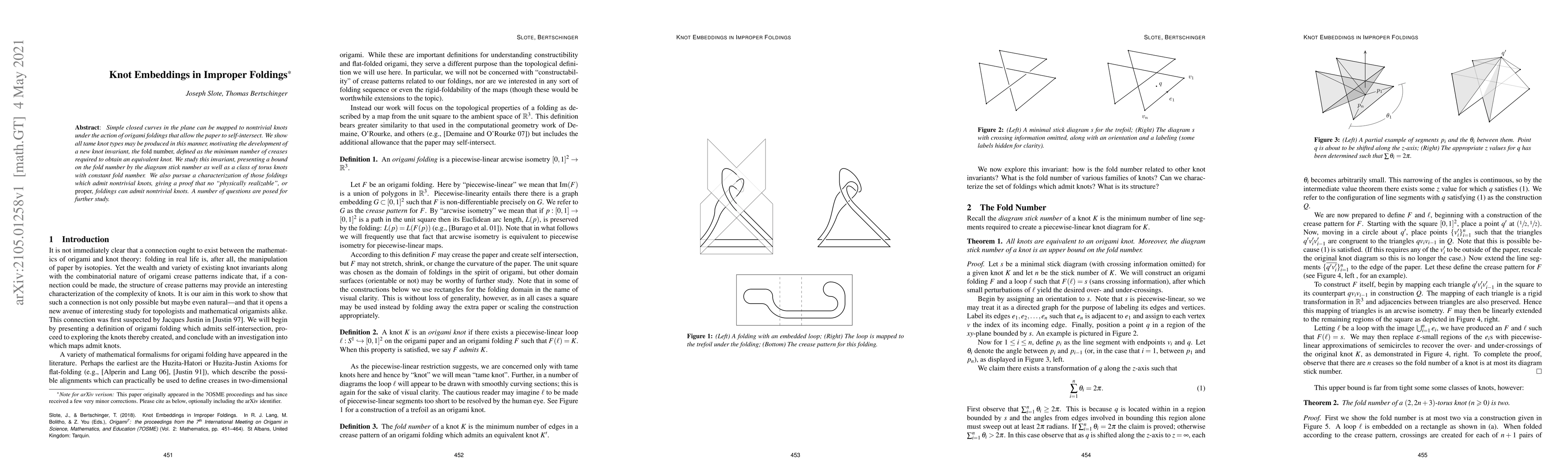 Simple closed curves in the plane can be mapped to nontrivial knots under the action of origami foldings that allow the paper to self-intersect. We show all tame knot types may be produced in this manner, motivating the development of a new knot invariant, the fold number, defined as the minimum number of creases required to obtain an equivalent knot. We study this invariant, presenting a bound on the fold number by the diagram stick number as well as a class of torus knots with constant fold number. We also pursue a characterization of those foldings which admit nontrivial knots, giving a proof that no "physically realizable", or proper, foldings can admit nontrivial knots. A number of questions are posed for further study.