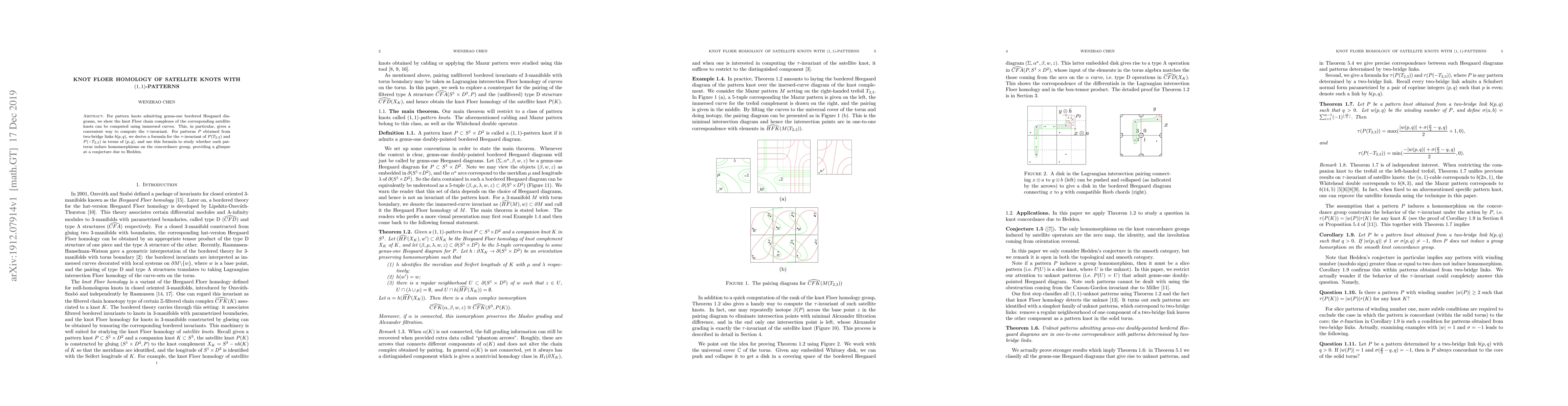 This research presents a method to compute knot Floer homology for satellite knots with (1,1)-patterns using immersed curves, simplifying the calculation of the u03c4-invariant. For patterns derived from two-bridge links, a u03c4-invariant formula in terms of (p,q) is established, aiding in understanding if these patterns induce homomorphisms on the concordance group, as part of a broader conjecture by Hedden.
