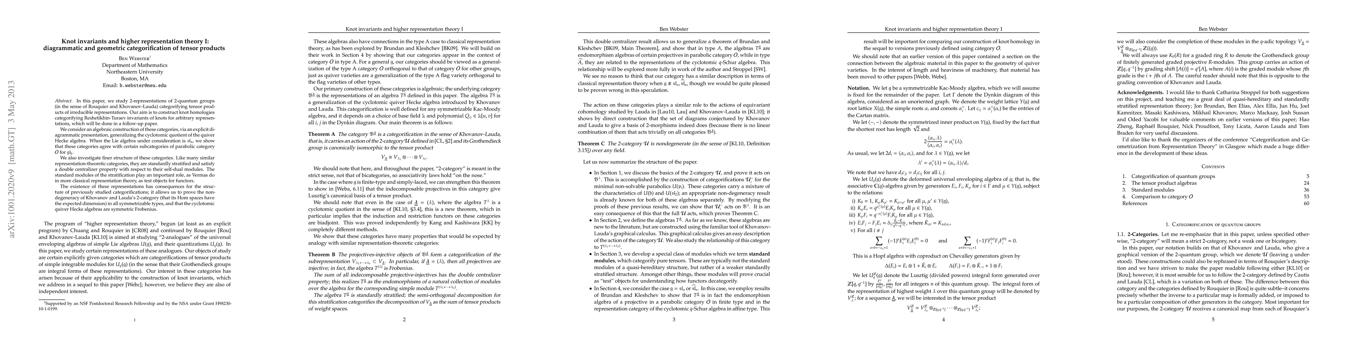 In this paper, we study 2-representations of 2-quantum groups (in the sense of Rouquier and Khovanov-Lauda) categorifying tensor products of irreducible representations. Our aim is to construct knot homologies categorifying Reshetikhin-Turaev invariants of knots for arbitrary representations, which will be done in a follow-up paper. We consider an algebraic construction of these categories, via an explicit diagrammatic presentation, generalizing the cyclotomic quotient of the quiver Hecke algebra. One of our primary results is that these categories coincide when both are defined. We also investigate finer structure of these categories. Like many similar representation-theoretic categories, they are standardly stratified and satisfy a double centralizer property with respect to their self-dual modules. The standard modules of the stratification play an important role, as Vermas do in more classical representation theory, as test objects for functors. The existence of these representations has consequences for the structure of previously studied categorifications; it allows us to prove the non-degeneracy of Khovanov and Lauda's 2-category (that its Hom spaces have the expected dimension) in all symmetrizable types, and that the cyclotomic quiver Hecke algebras are symmetric Frobenius.