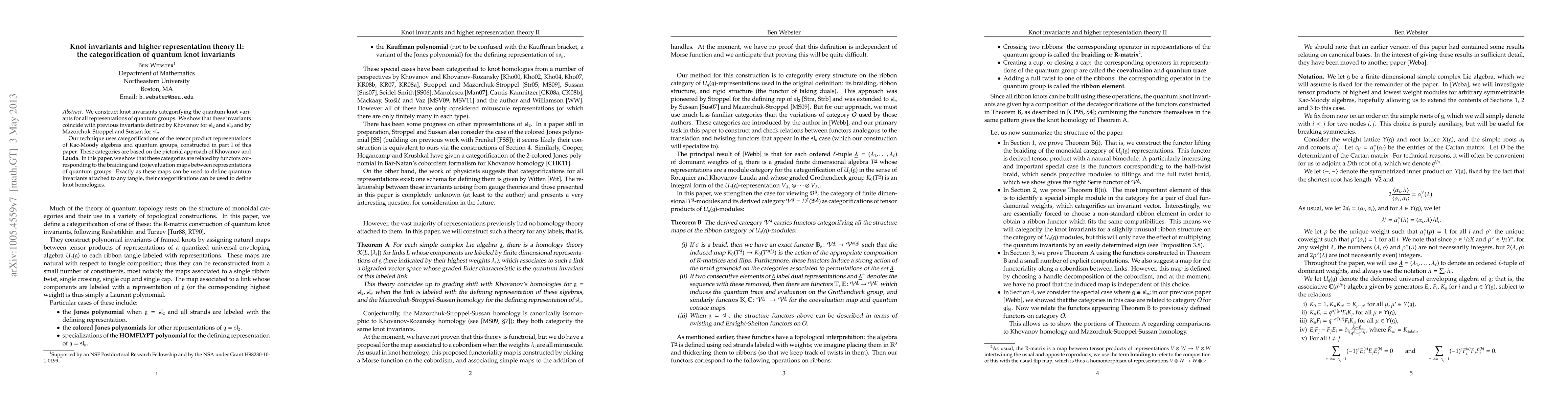 We construct knot invariants categorifying the quantum knot variants for all representations of quantum groups. We show that these invariants coincide with previous invariants defined by Khovanov for sl(2) and sl(3) and by Mazorchuk-Stroppel and Sussan for sl(n). Our technique uses categorifications of the tensor product representations of Kac-Moody algebras and quantum groups, constructed a prequel to this paper. These categories are based on the pictorial approach of Khovanov and Lauda. In this paper, we show that these categories are related by functors corresponding to the braiding and (co)evaluation maps between representations of quantum groups. Exactly as these maps can be used to define quantum invariants attached to any tangle, their categorifications can be used to define knot homologies.
