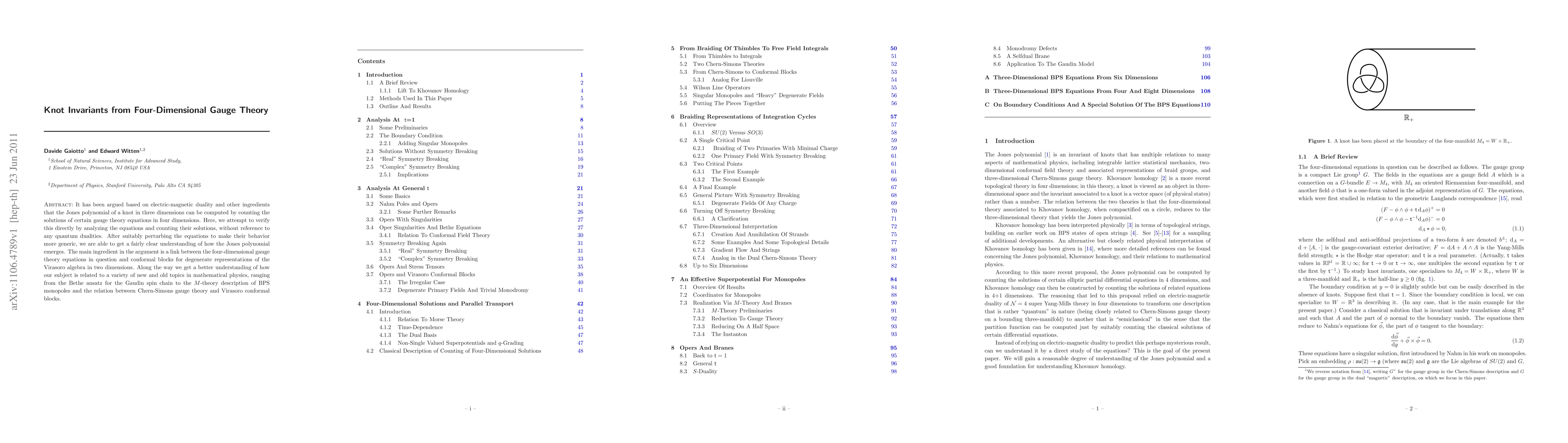 This paper investigates how knot invariants can be computed using four-dimensional gauge theory equations in 3D space, shedding light on connections to conformal blocks and mathematical physics topics.