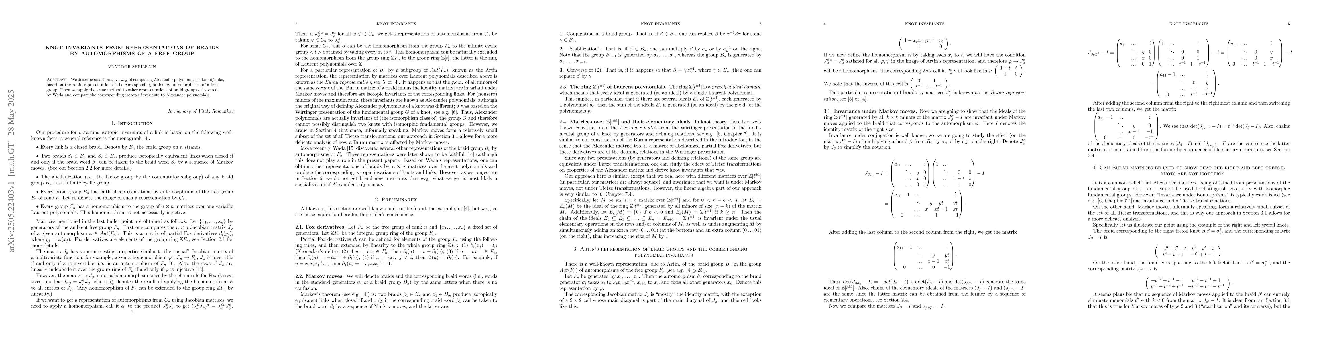 This work distinguishes itself by linking knot invariants to automorphisms of free groups, providing a fresh perspective on established knot theory.