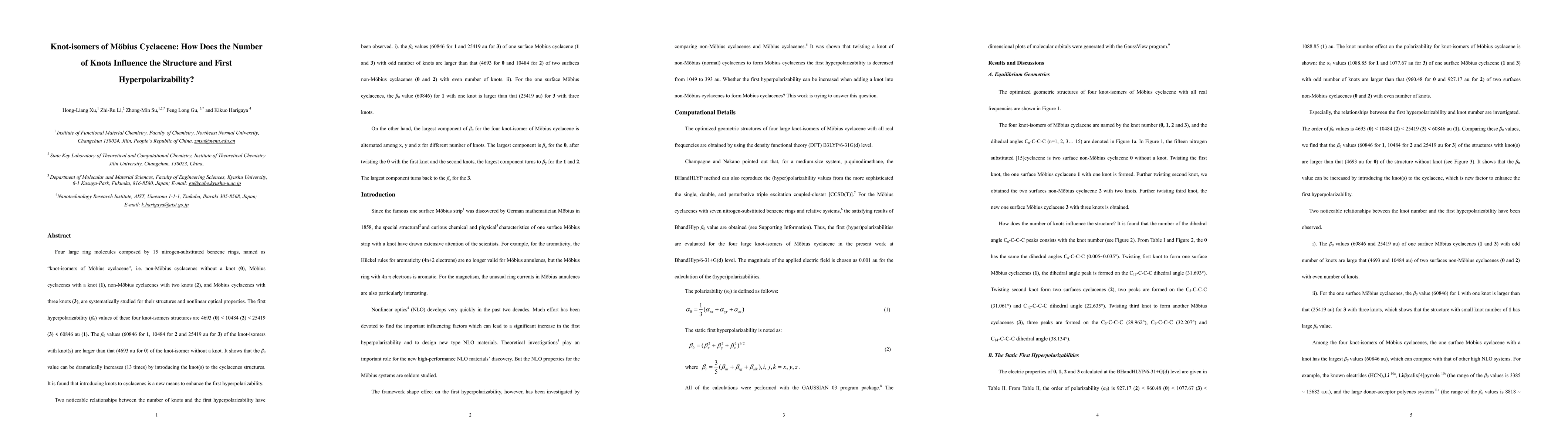 Four large ring molecules composed by 15 nitrogen-substituted benzene rings, named as "knot-isomers of Moebius cyclacene", i.e. non-Moebius cyclacenes without a knot (0), Moebius cyclacenes with a knot (1), non-Moebius cyclacenes with two knots (2), and Moebius cyclacenes with three knots (3), are systematically studied for their structures and nonlinear optical properties. The first hyperpolarizability (beta_0) values of these four knot-isomers structures are 4693 (0) < 10484 (2) < 25419 (3) < 60846 au (1). The beta_0 values (60846 for 1, 10484 for 2 and 25419 au for 3) of the knot-isomers with knot(s) are larger than that (4693 au for 0) of the knot-isomer without a knot. It shows that the beta_0 value can be dramatically increases (13 times) by introducing the knot(s) to the cyclacenes structures. It is found that introducing knots to cyclacenes is a new means to enhance the first hyperpolarizability.