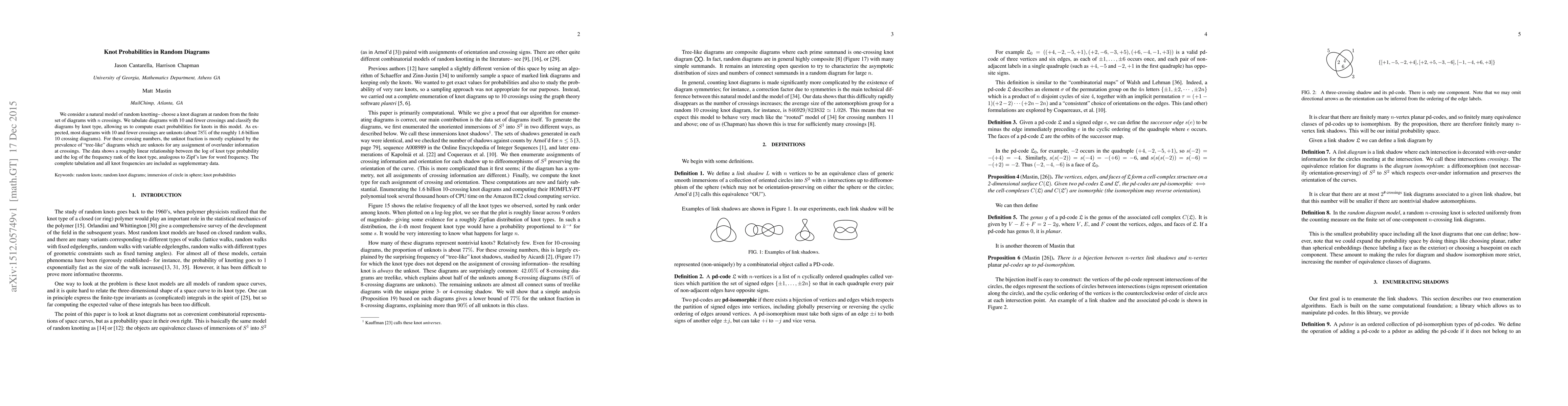 The paper presents a method for computing exact knot probabilities in random diagrams, classifying diagrams by knot type, and identifying structural properties explaining the high unknot fraction.