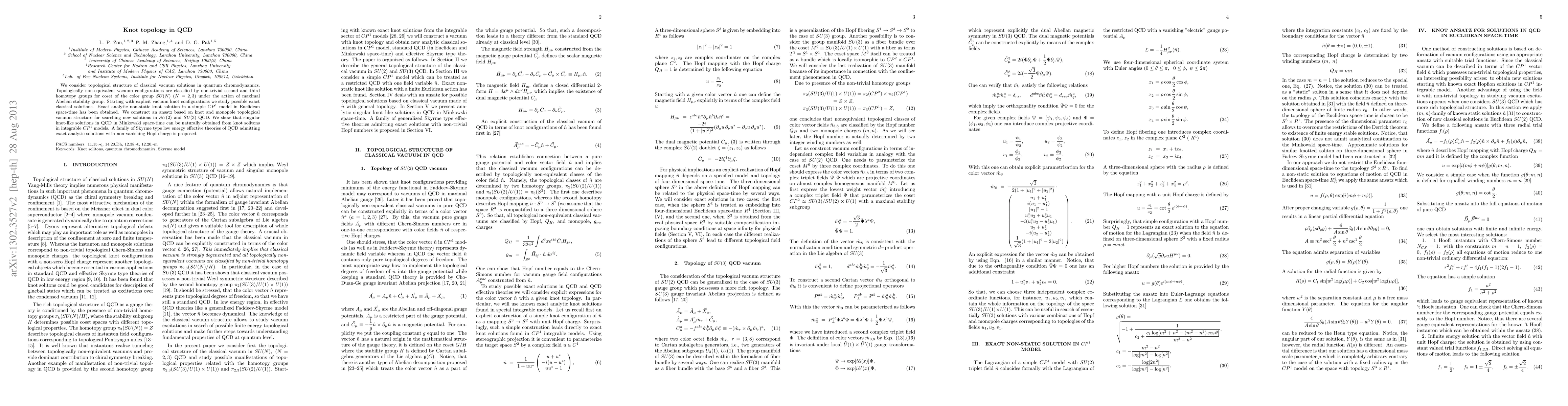 This paper explores the topological structure of vacuum solutions in quantum chromodynamics (QCD), classifying non-equivalent vacuum configurations using second and third homotopy groups. It proposes an ansatz based on knot and monopole structures for finding new solutions in SU(2) and SU(3) QCD, and demonstrates how singular knot-like solutions in QCD can be derived from integrable CP^1 models.