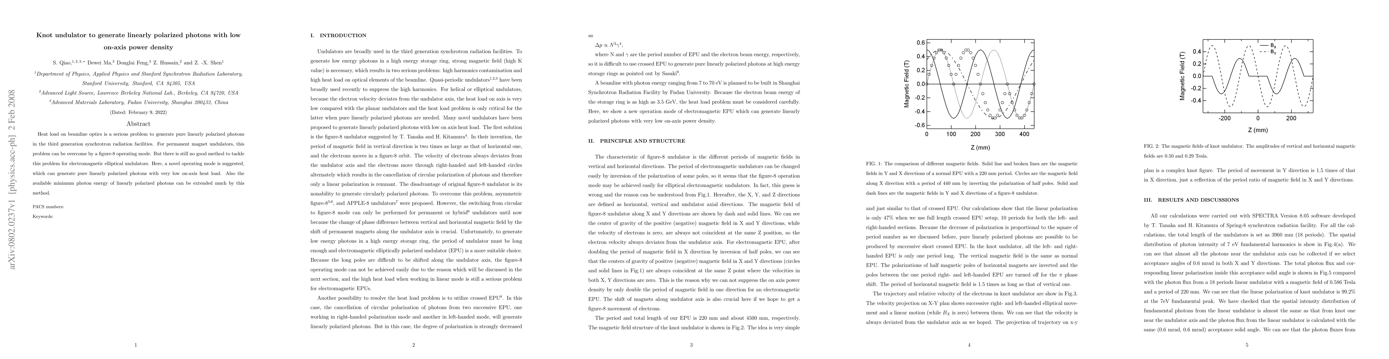 This paper proposes a novel "knot undulator" operating mode to generate pure linearly polarized photons with minimal on-axis heat load in electromagnetic elliptical undulators, addressing the heat load issue in third-generation synchrotron radiation facilities. This method also extends the available minimum photon energy for linearly polarized photons.