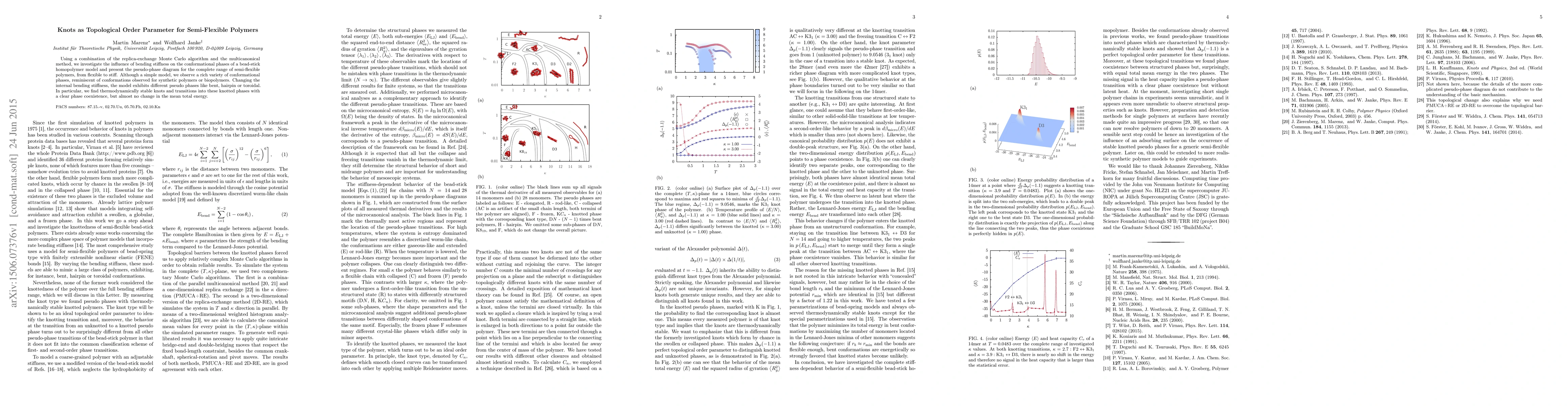 This study employs advanced computational techniques to explore how bending stiffness affects the conformational phases of semi-flexible polymers, revealing a variety of phases including knotted states. The research identifies thermodynamically stable knots and their transitions, indicating that knotting occurs with minimal changes in mean total energy, suggesting a new topological order parameter for polymer behavior.