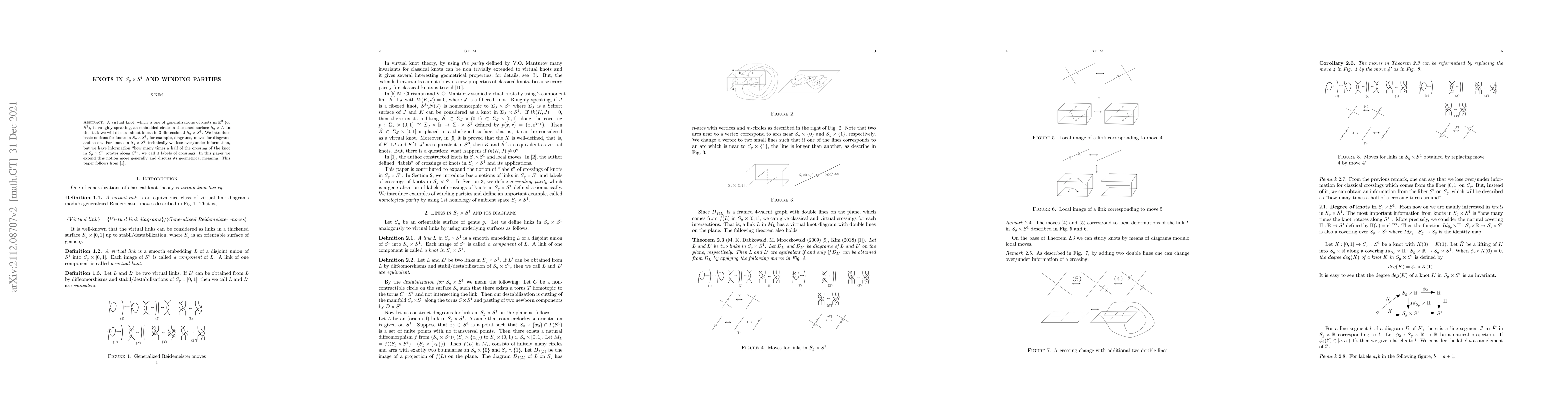 This paper explores virtual knots in the 3-dimensional product space $S_{g} \times S^{1}$, introducing diagrams and moves while maintaining a concept of crossing labels indicating rotational winding parities. It extends these ideas to discuss their broader geometrical implications.