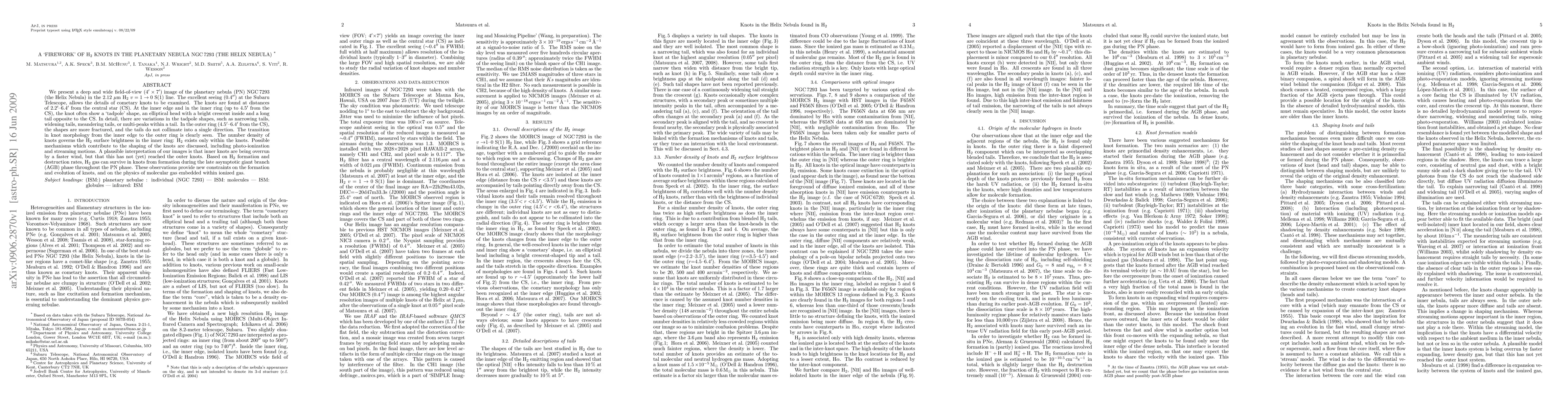 We present a deep and wide field-of-view (4'x 7') image of the planetary nebula (PN) NGC 7293 (the Helix Nebula) in the 2.12 micron H2 v=1-0 S(1) line. The excellent seeing (0.4'') at the Subaru Telescope, allows the details of cometary knots to be examined. The knots are found at distances of 2.2'-6.4' from the central star (CS). At the inner edge and in the inner ring (up to 4.5' fromthe CS), the knot often show a `tadpole' shape, an elliptical head with a bright crescent inside and a long tail opposite to the CS. In detail, there are variations in the tadpole shapes, such as narrowing tails, widening tails, meandering tails, or multi-peaks within a tail. In the outer ring (4.5'-6.4' from the CS), the shapes are more fractured, and the tails do not collimate into a single direction. The transition in knot morphology from the inner edge to the outer ring is clearly seen. The number density of knots governs the H2 surface brightness in the inner ring: H2 exists only within the knots. Possible mechanisms which contribute to the shaping of the knots are discussed, including photo-ionization and streaming motions. A plausible interpretation of our images is that inner knots are being overrun by a faster wind, but that this has not (yet) reached the outer knots. Based on H2 formation and destruction rates, H2 gas can survive in knots from formation during the late asymptotic giant branch (AGB) phase throughout the PN phase. These observations provide new constraints on the formation and evolution of knots, and on the physics of molecular gas embedded within ionized gas.