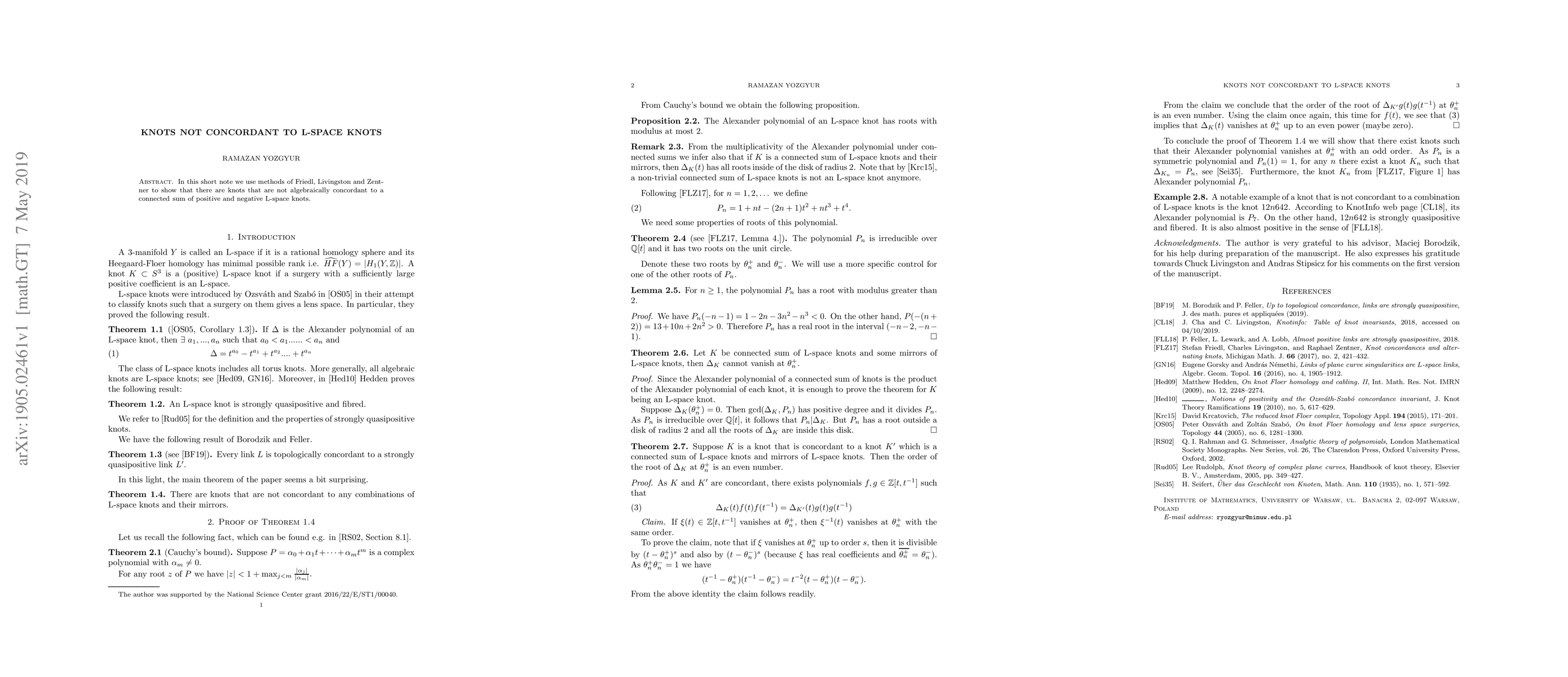 Summary: This paper demonstrates that certain knots cannot be algebraically concordant to a connected sum of positive and negative L-space knots using techniques developed by Friedl, Livingston, and Zentner. It highlights the distinction between these knots and L-space knots.