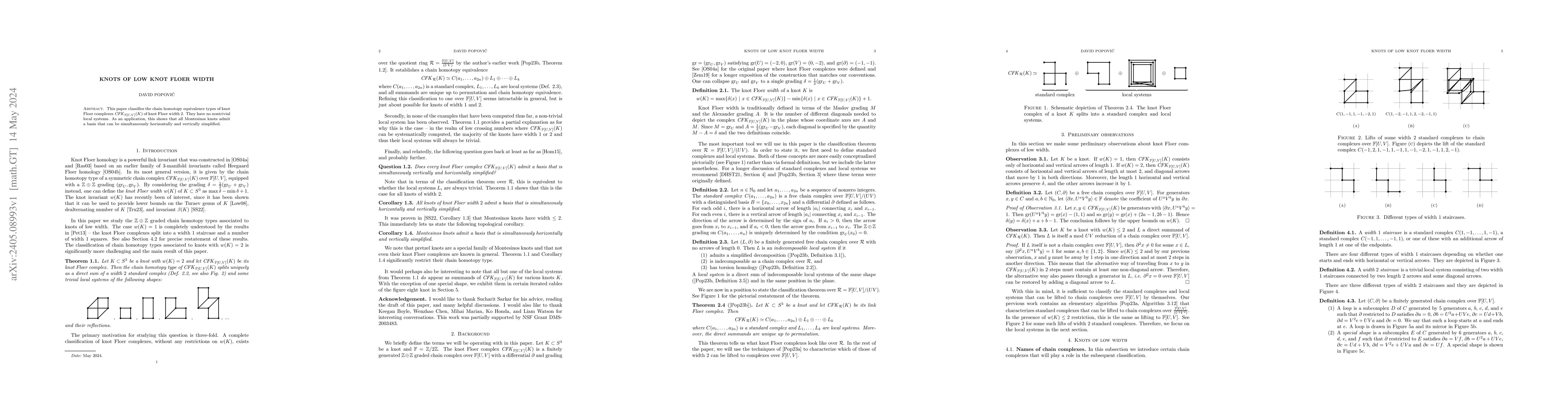 This paper classifies knot Floer complexes of knots with knot Floer width 2, showing they lack nontrivial local systems and that all Montesinos knots can be simplified both horizontally and vertically.