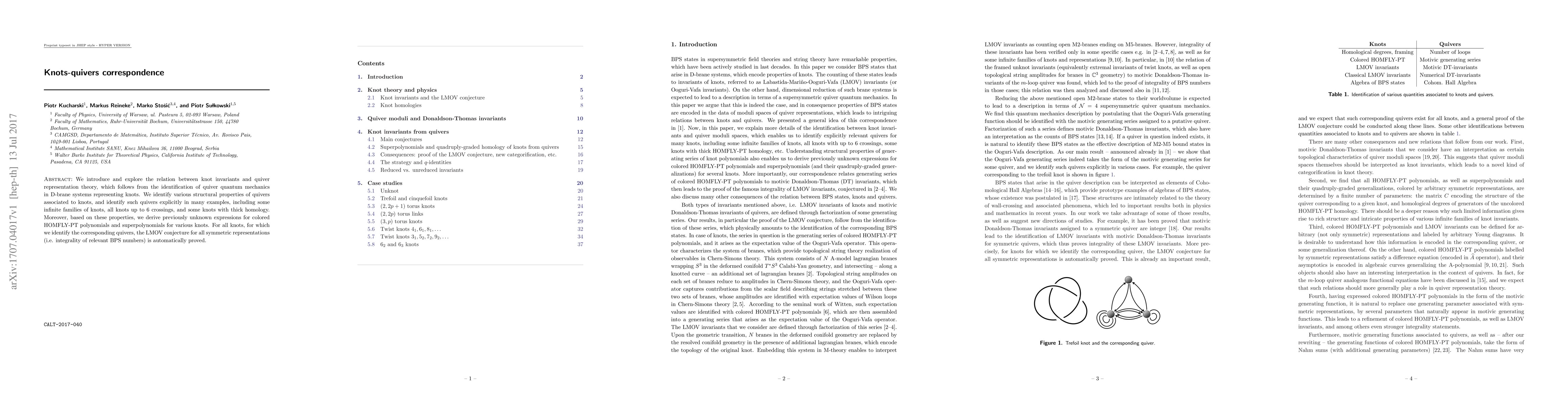 The development of a formalism for encoding knot polynomials in terms of quivers.