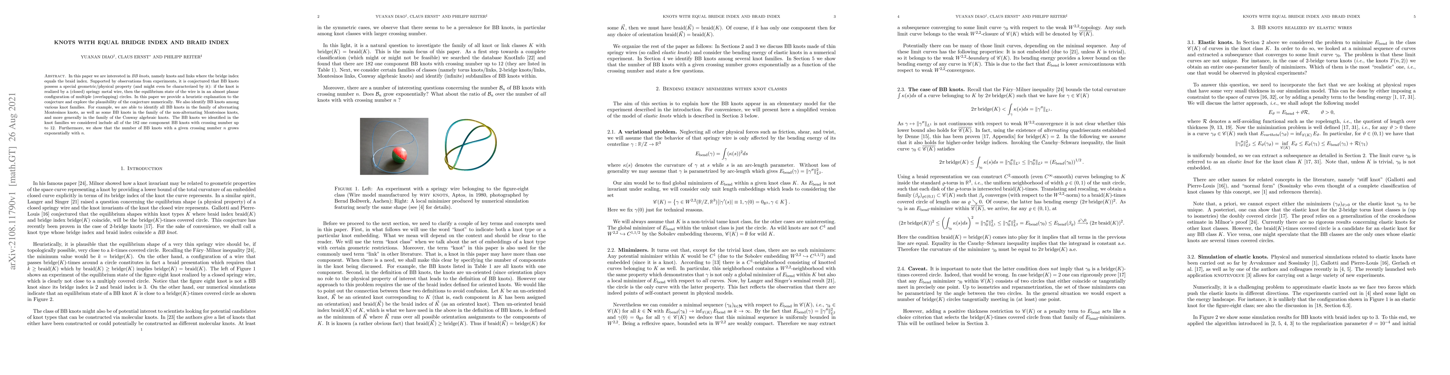 This paper explores BB knots, where the bridge index equals the braid index, and hypothesizes that these knots maintain an almost planar configuration in equilibrium. It provides a heuristic explanation for this conjecture and numerically investigates its plausibility, identifying BB knots within various knot families, including Montesinos and Conway algebraic knots, and showing exponential growth in BB knots with increasing crossing number.