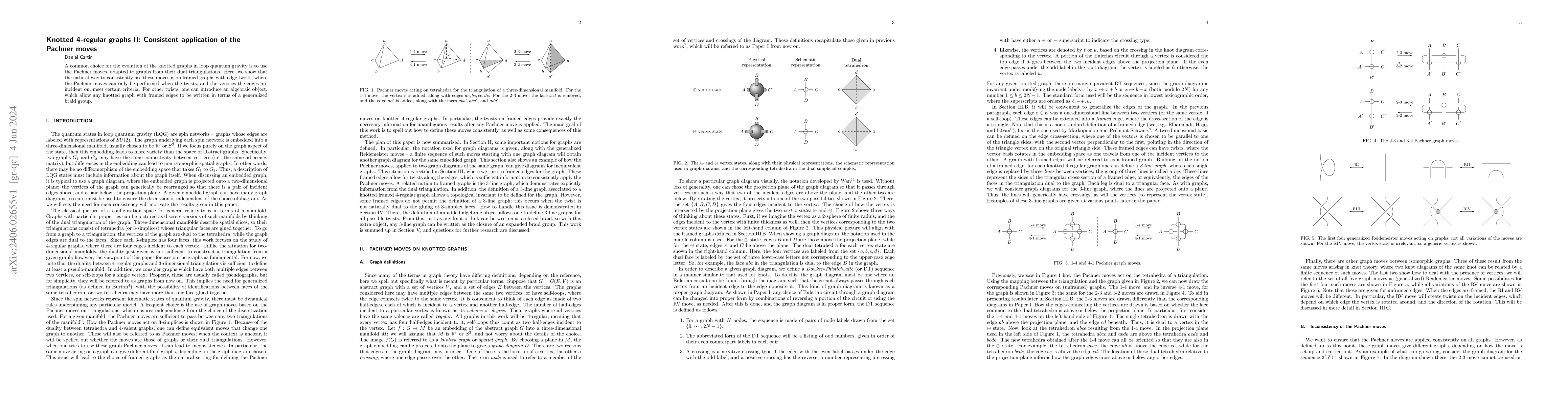 This paper explores the consistent application of Pachner moves to knotted 4-regular graphs in loop quantum gravity, emphasizing the importance of edge twists and specific vertex criteria for their execution. It also introduces an algebraic object to express any knotted graph in terms of a generalized braid group when direct Pachner moves are infeasible.