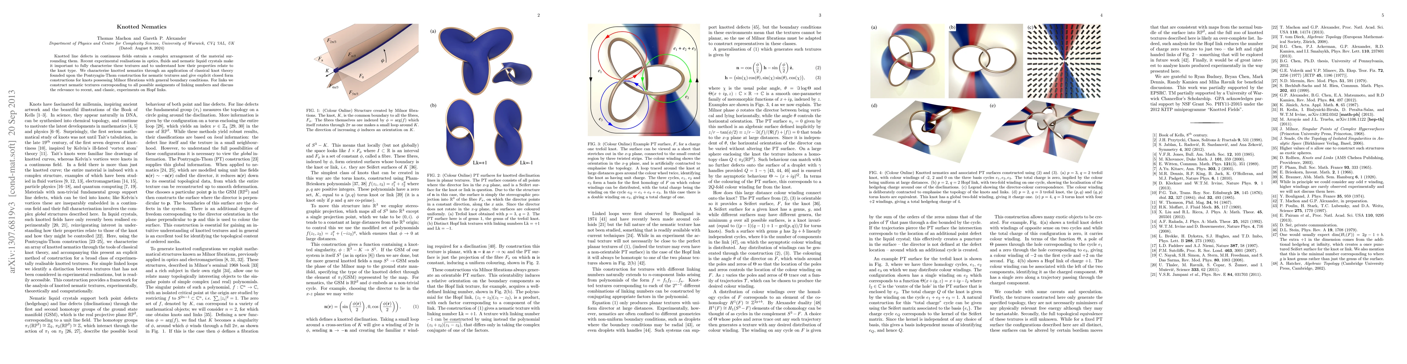 This paper applies classical knot theory to characterize knotted nematics in materials like liquid crystals, providing explicit formulas for various knot types. It also constructs nematic textures for links with different linking numbers, discussing their relevance to experiments.
