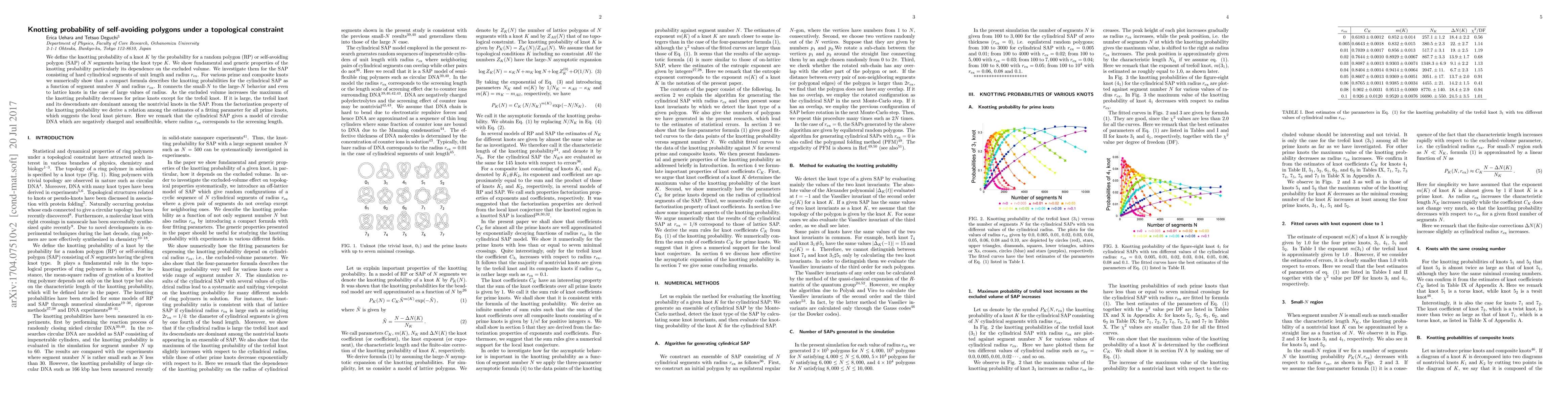 Researchers studied the probability of knots in self-avoiding polygons with varying sizes and radii, finding that certain knots dominate as radius increases.