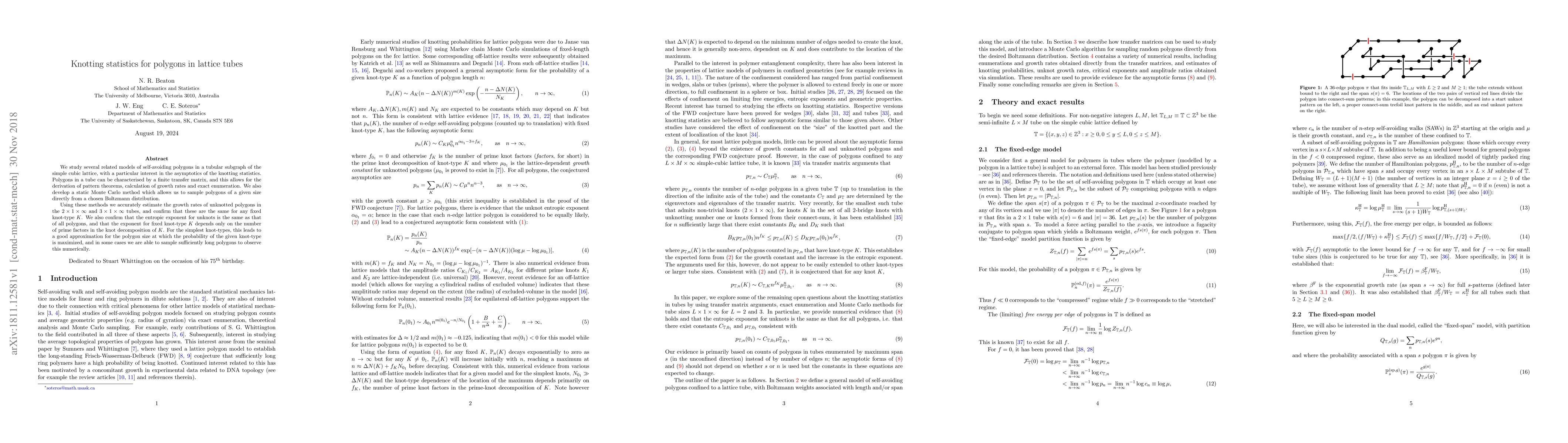 This paper investigates the asymptotics of knotting statistics for self-avoiding polygons in lattice tubes, deriving growth rates and exact enumeration using a finite transfer matrix approach. It also develops a Monte Carlo method for sampling polygons, confirming that growth rates and entropic exponents depend on knot complexity and tube dimensions.