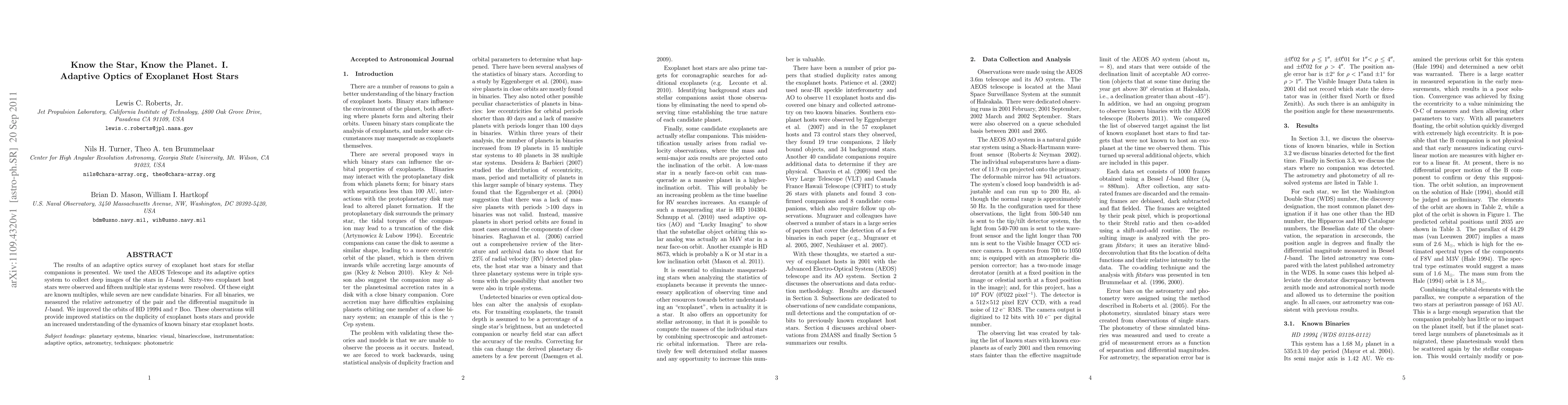 This study utilized adaptive optics on the AEOS Telescope to survey exoplanet host stars for stellar companions, identifying fifteen multiple star systems among sixty-two observed. The findings include eight known binaries and seven new candidate binaries, enhancing the understanding of the dynamics of binary star systems hosting exoplanets.