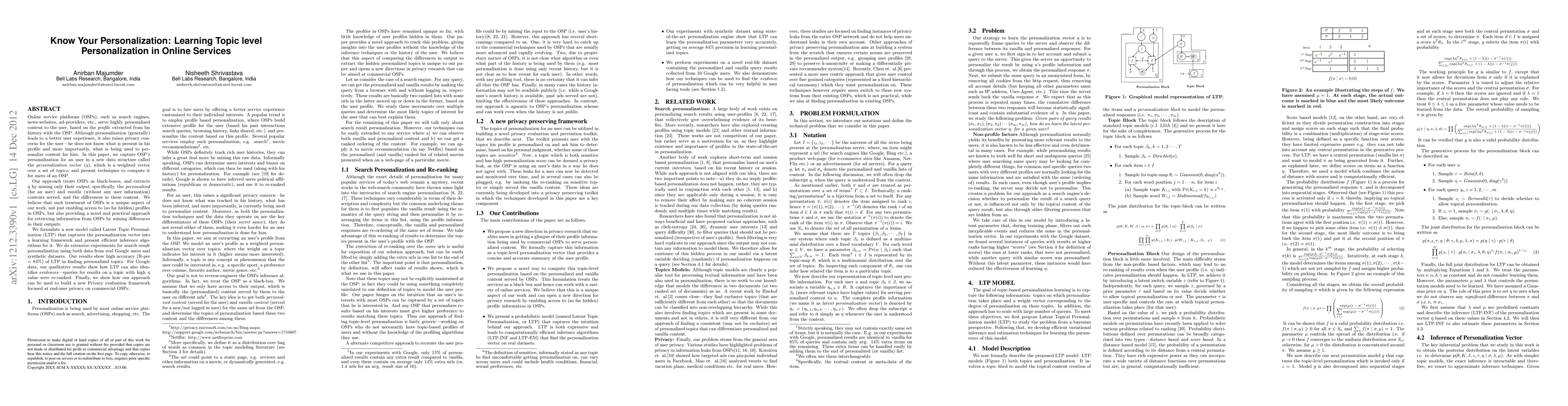 Online service platforms (OSPs), such as search engines, news-websites, ad-providers, etc., serve highly pe rsonalized content to the user, based on the profile extracted from his history with the OSP. Although personalization (generally) leads to a better user experience, it also raises privacy concerns for the user---he does not know what is present in his profile and more importantly, what is being used to per sonalize content for him. In this paper, we capture OSP's personalization for an user in a new data structure called the person alization vector ($\eta$), which is a weighted vector over a set of topics, and present techniques to compute it for users of an OSP. Our approach treats OSPs as black-boxes, and extracts $\eta$ by mining only their output, specifical ly, the personalized (for an user) and vanilla (without any user information) contents served, and the differences in these content. We formulate a new model called Latent Topic Personalization (LTP) that captures the personalization vector into a learning framework and present efficient inference algorithms for it. We do extensive experiments for search result personalization using both data from real Google users and synthetic datasets. Our results show high accuracy (R-pre = 84%) of LTP in finding personalized topics. For Google data, our qualitative results show how LTP can also identifies evidences---queries for results on a topic with high $\eta$ value were re-ranked. Finally, we show how our approach can be used to build a new Privacy evaluation framework focused at end-user privacy on commercial OSPs.