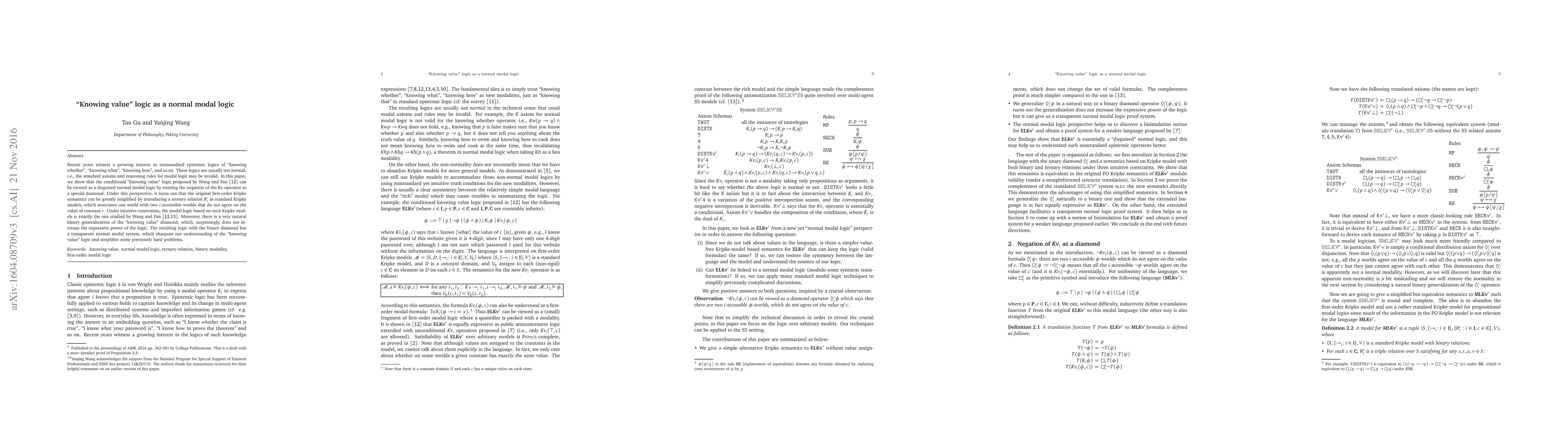 This paper demonstrates that the "knowing value" logic proposed by Wang and Fan can be framed as a normal modal logic by reinterpreting its negation. It simplifies the original Kripke semantics via a ternary relation, showing that the logic aligns with standard modal systems under intuitive constraints, and reveals a binary generalization that does not enhance expressive power.