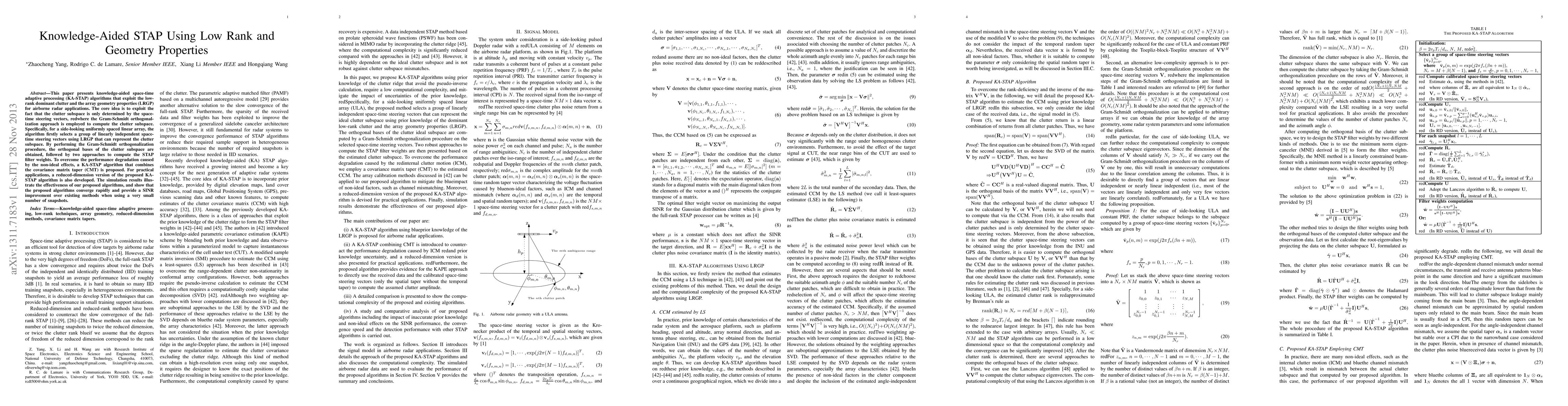 This paper proposes knowledge-aided space-time adaptive processing (KA-STAP) algorithms that leverage low-rank and geometry properties for airborne radar. The algorithms utilize the Gram-Schmidt orthogonalization to determine the clutter subspace, achieving improved SINR with fewer snapshots.