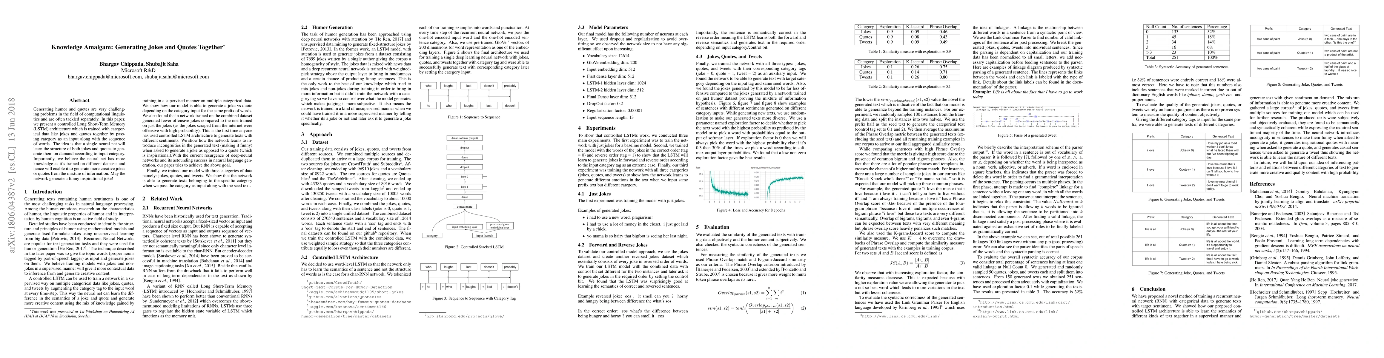 Generating humor and quotes are very challenging problems in the field of computational linguistics and are often tackled separately. In this paper, we present a controlled Long Short-Term Memory (LSTM) architecture which is trained with categorical data like jokes and quotes together by passing category as an input along with the sequence of words. The idea is that a single neural net will learn the structure of both jokes and quotes to generate them on demand according to input category. Importantly, we believe the neural net has more knowledge as it's trained on different datasets and hence will enable it to generate more creative jokes or quotes from the mixture of information. May the network generate a funny inspirational joke!