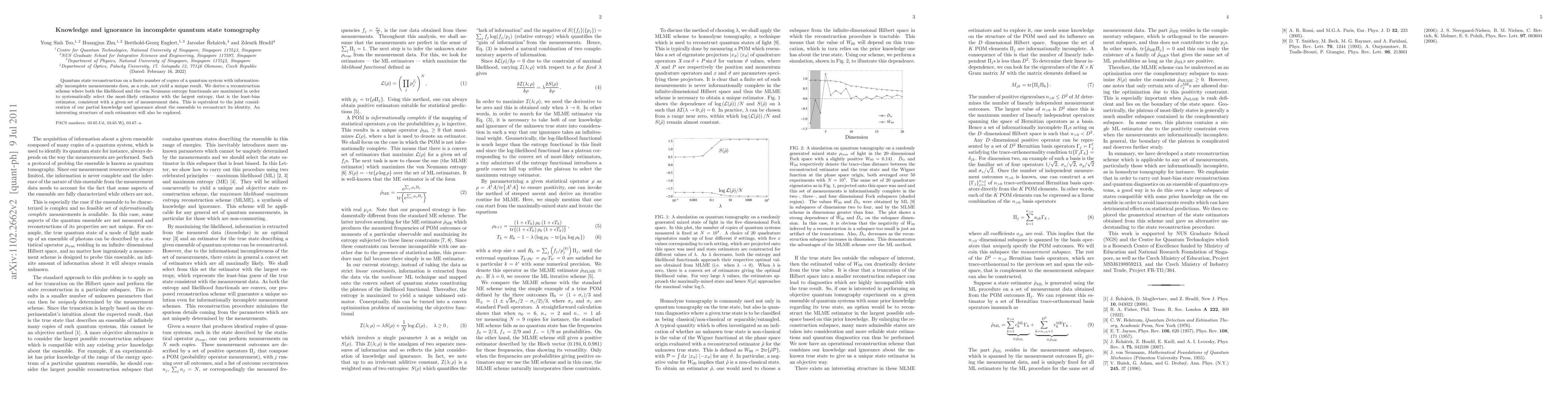 This paper proposes a reconstruction scheme for incomplete quantum state tomography that maximizes both likelihood and von Neumann entropy to select the most probable estimator with the largest ignorance, thus minimizing bias. The method considers both partial knowledge and ignorance about the quantum ensemble.