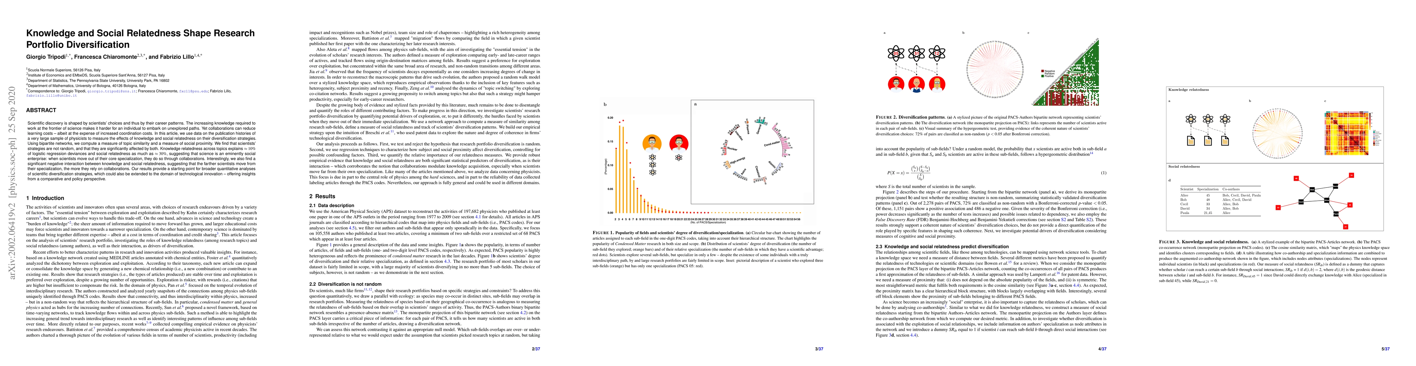This paper examines how knowledge and social relatedness influence scientists' research diversification strategies, using a large dataset of physicists. It finds that both factors significantly shape diversification, with social relatedness having a stronger impact, suggesting that collaborations play a crucial role in scientific exploration beyond core specializations.