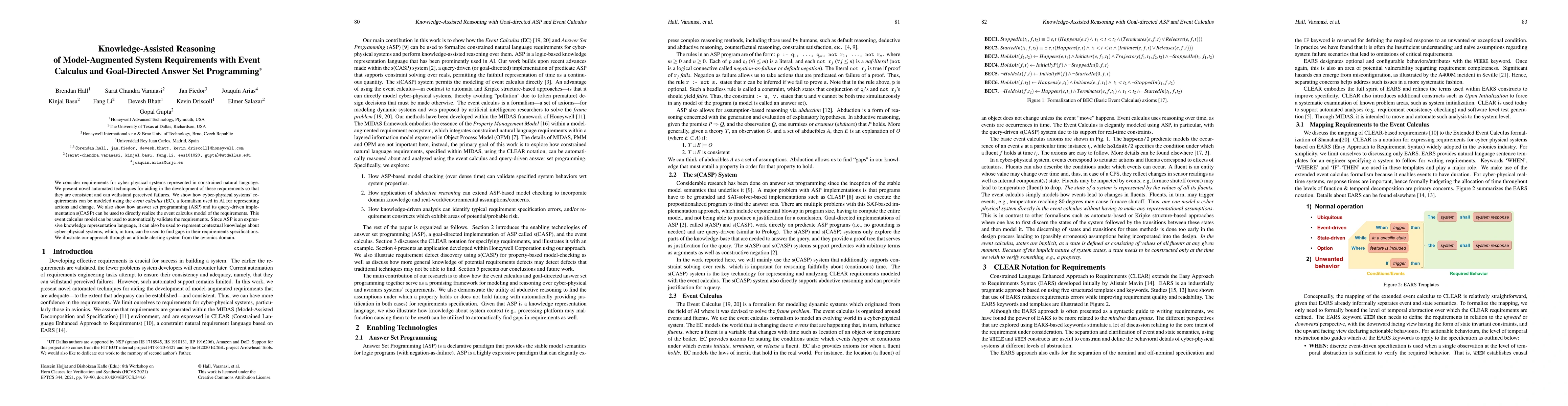 This paper introduces automated techniques for developing consistent requirements for cyber-physical systems using event calculus and goal-directed answer set programming. It demonstrates the use of these methods to validate requirements and identify gaps, illustrated through an altitude alerting system in avionics.