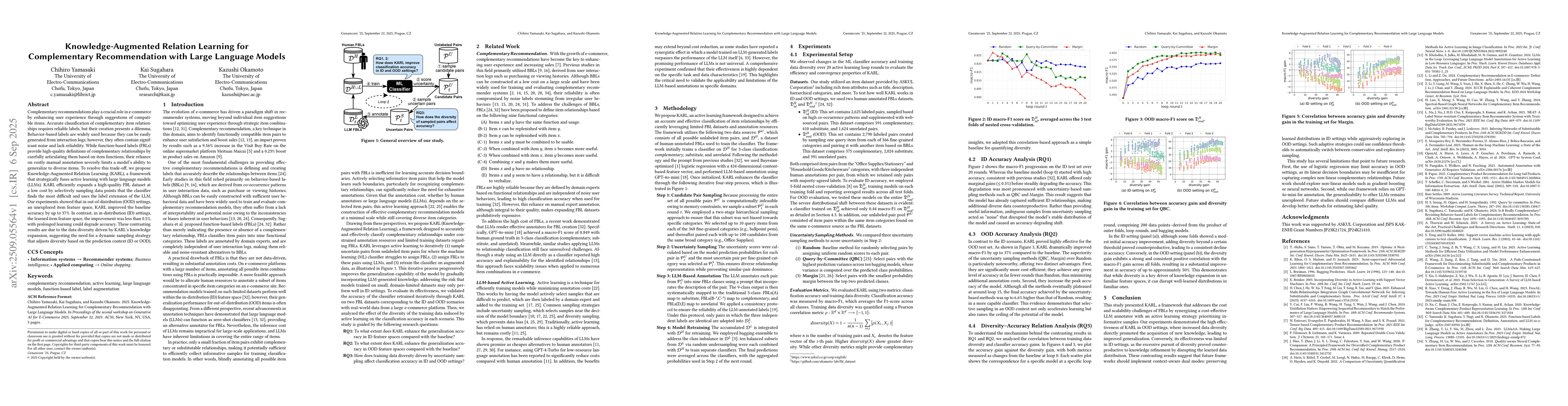 Complementary recommendations play a crucial role in e-commerce by enhancing user experience through suggestions of compatible items. Accurate classification of complementary item relationships requires reliable labels, but their creation presents a dilemma. Behavior-based labels are widely used because they can be easily generated from interaction logs; however, they often contain significant noise and lack reliability. While function-based labels (FBLs) provide high-quality definitions of complementary relationships by carefully articulating them based on item functions, their reliance on costly manual annotation severely limits a model's ability to generalize to diverse items. To resolve this trade-off, we propose Knowledge-Augmented Relation Learning (KARL), a framework that strategically fuses active learning with large language models (LLMs). KARL efficiently expands a high-quality FBL dataset at a low cost by selectively sampling data points that the classifier finds the most difficult and uses the label extension of the LLM. Our experiments showed that in out-of-distribution (OOD) settings, an unexplored item feature space, KARL improved the baseline accuracy by up to 37%. In contrast, in in-distribution (ID) settings, the learned item feature space, the improvement was less than 0.5%, with prolonged learning could degrade accuracy. These contrasting results are due to the data diversity driven by KARL's knowledge expansion, suggesting the need for a dynamic sampling strategy that adjusts diversity based on the prediction context (ID or OOD).
