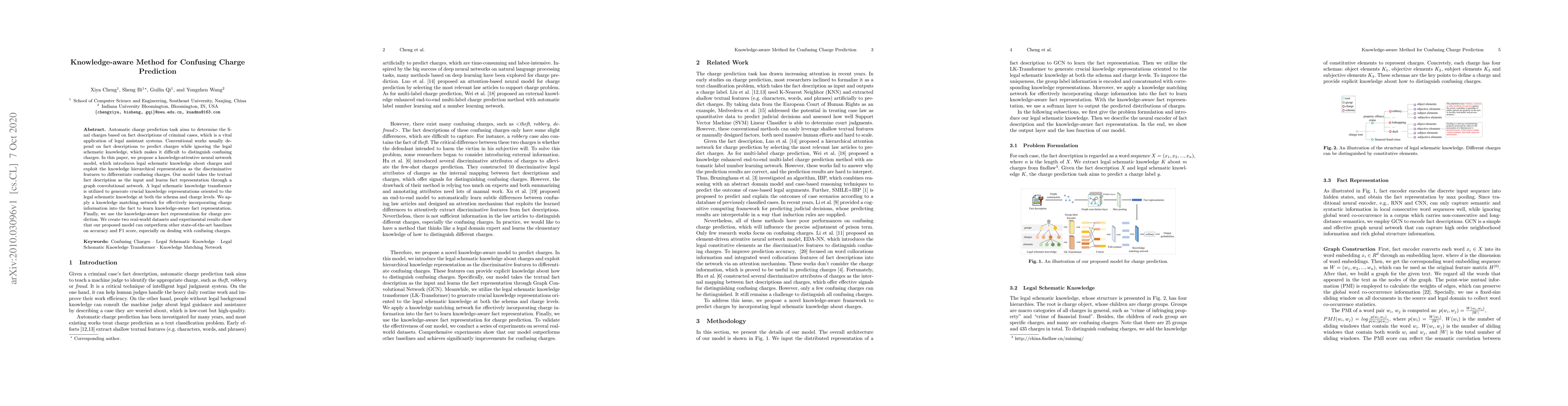 This paper introduces a knowledge-aware neural network model for predicting legal charges from fact descriptions by integrating legal schematic knowledge. The proposed method outperforms existing models, especially in distinguishing confusing charges, as demonstrated by superior accuracy and F1 scores on two real-world datasets.