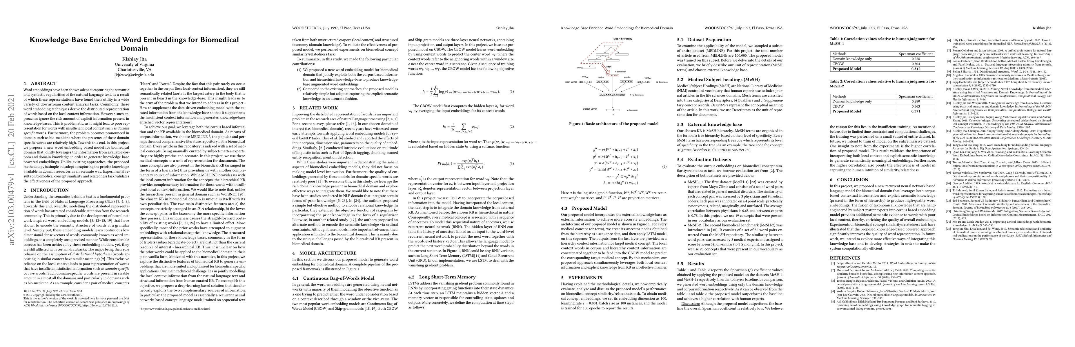 This paper proposes a novel word embedding model for the biomedical domain that integrates knowledge from both corpora and domain-specific knowledge bases to enhance word representations, especially for domain-specific terms. Experimental results show the effectiveness of the approach in biomedical concept similarity and relatedness tasks.