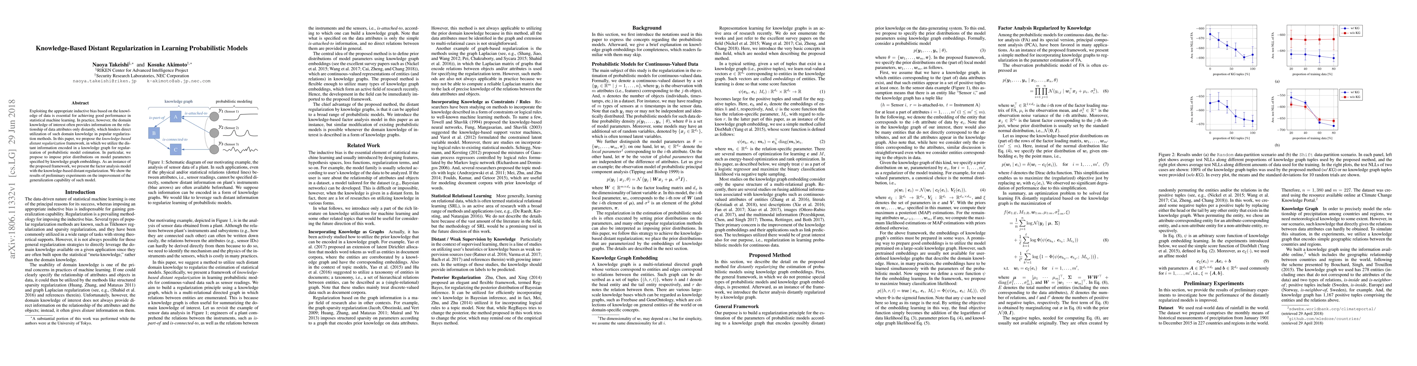 This paper proposes a new method for using domain knowledge to improve probabilistic models, called knowledge-based distant regularization, which uses a knowledge graph to encode relationships between data attributes.