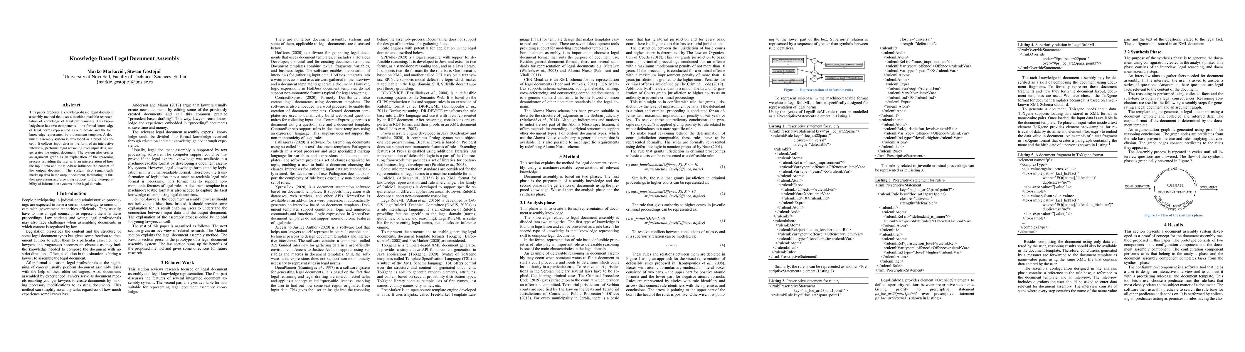 This paper introduces a knowledge-based system for legal document assembly that utilizes a machine-readable representation of legal norms and document templates. The system conducts legal reasoning and generates documents, while also providing an explanation of its reasoning process and semantically marks the output for interoperability.