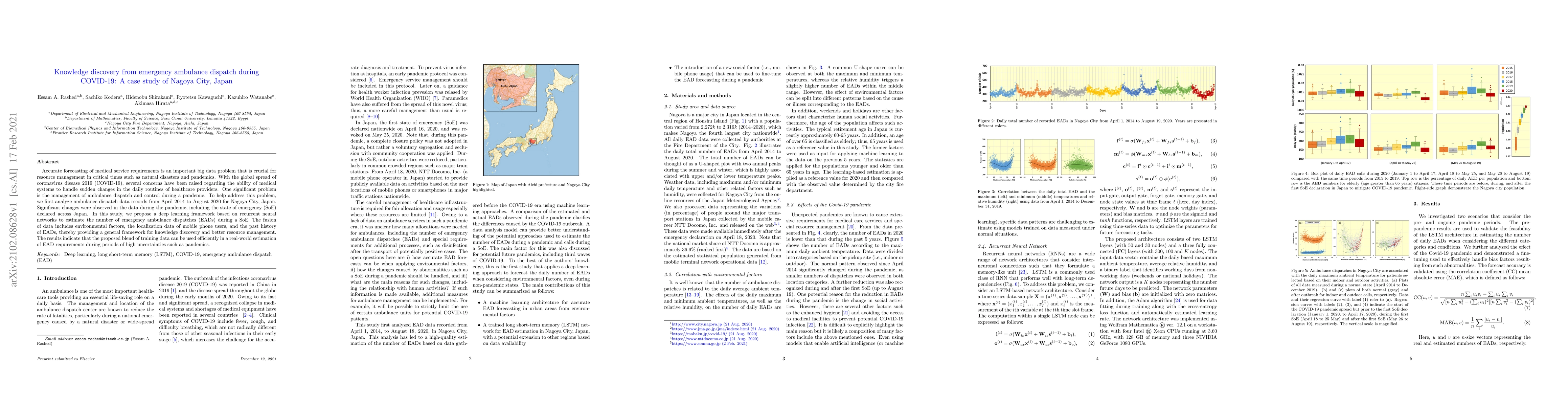 Accurate forecasting of medical service requirements is an important big data problem that is crucial for resource management in critical times such as natural disasters and pandemics. With the global spread of coronavirus disease 2019 (COVID-19), several concerns have been raised regarding the ability of medical systems to handle sudden changes in the daily routines of healthcare providers. One significant problem is the management of ambulance dispatch and control during a pandemic. To help address this problem, we first analyze ambulance dispatch data records from April 2014 to August 2020 for Nagoya City, Japan. Significant changes were observed in the data during the pandemic, including the state of emergency (SoE) declared across Japan. In this study, we propose a deep learning framework based on recurrent neural networks to estimate the number of emergency ambulance dispatches (EADs) during a SoE. The fusion of data includes environmental factors, the localization data of mobile phone users, and the past history of EADs, thereby providing a general framework for knowledge discovery and better resource management. The results indicate that the proposed blend of training data can be used efficiently in a real-world estimation of EAD requirements during periods of high uncertainties such as pandemics.