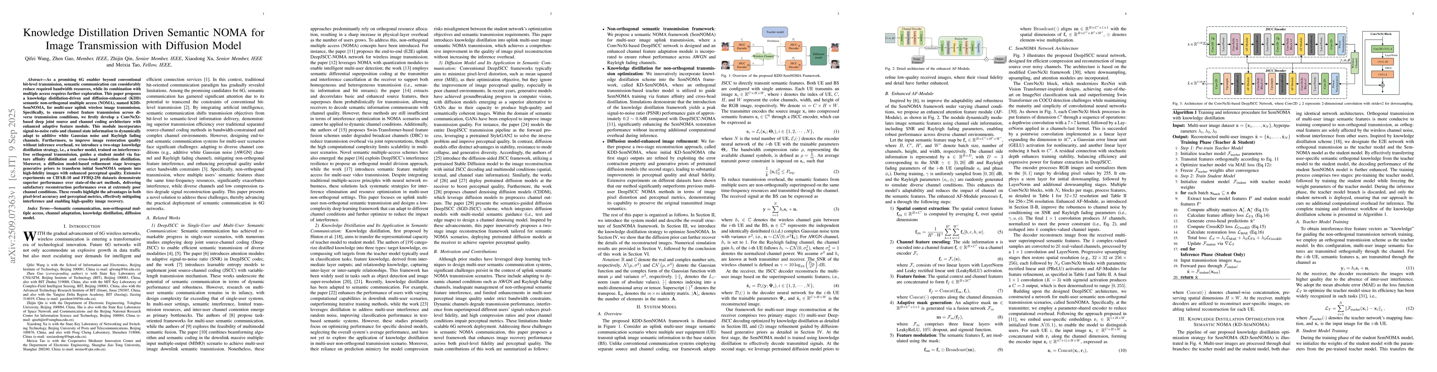 As a promising 6G enabler beyond conventional bit-level transmission, semantic communication can considerably reduce required bandwidth resources, while its combination with multiple access requires further exploration. This paper proposes a knowledge distillation-driven and diffusion-enhanced (KDD) semantic non-orthogonal multiple access (NOMA), named KDD-SemNOMA, for multi-user uplink wireless image transmission. Specifically, to ensure robust feature transmission across diverse transmission conditions, we firstly develop a ConvNeXt-based deep joint source and channel coding architecture with enhanced adaptive feature module. This module incorporates signal-to-noise ratio and channel state information to dynamically adapt to additive white Gaussian noise and Rayleigh fading channels. Furthermore, to improve image restoration quality without inference overhead, we introduce a two-stage knowledge distillation strategy, i.e., a teacher model, trained on interference-free orthogonal transmission, guides a student model via feature affinity distillation and cross-head prediction distillation. Moreover, a diffusion model-based refinement stage leverages generative priors to transform initial SemNOMA outputs into high-fidelity images with enhanced perceptual quality. Extensive experiments on CIFAR-10 and FFHQ-256 datasets demonstrate superior performance over state-of-the-art methods, delivering satisfactory reconstruction performance even at extremely poor channel conditions. These results highlight the advantages in both pixel-level accuracy and perceptual metrics, effectively mitigating interference and enabling high-quality image recovery.