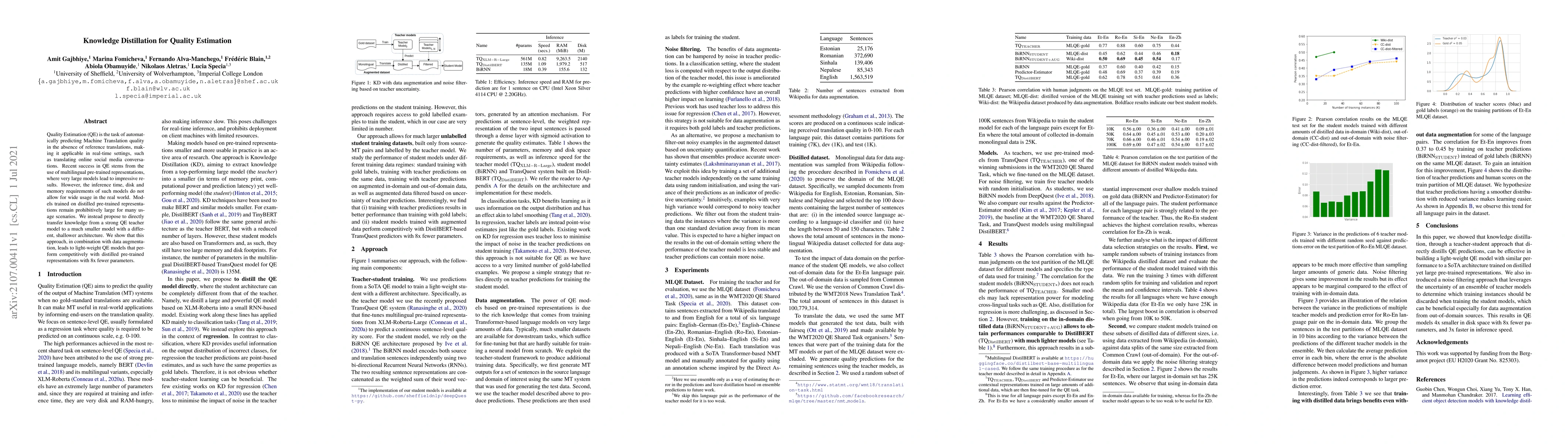 Researchers developed a new approach to quality estimation in machine translation that reduces model size while maintaining performance, using knowledge distillation from a strong teacher model.