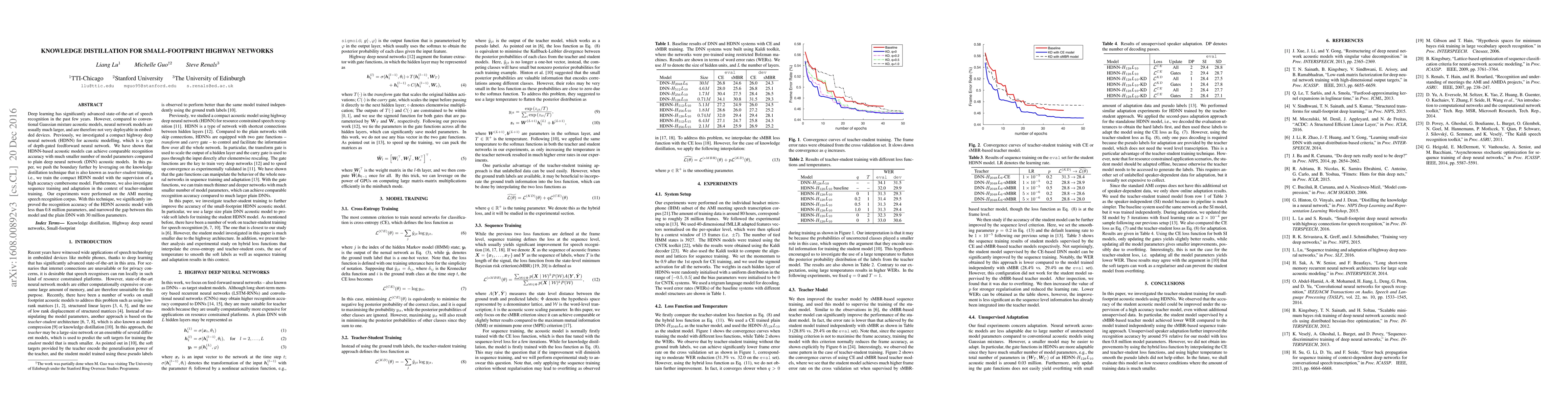 Deep learning has significantly advanced state-of-the-art of speech recognition in the past few years. However, compared to conventional Gaussian mixture acoustic models, neural network models are usually much larger, and are therefore not very deployable in embedded devices. Previously, we investigated a compact highway deep neural network (HDNN) for acoustic modelling, which is a type of depth-gated feedforward neural network. We have shown that HDNN-based acoustic models can achieve comparable recognition accuracy with much smaller number of model parameters compared to plain deep neural network (DNN) acoustic models. In this paper, we push the boundary further by leveraging on the knowledge distillation technique that is also known as {\it teacher-student} training, i.e., we train the compact HDNN model with the supervision of a high accuracy cumbersome model. Furthermore, we also investigate sequence training and adaptation in the context of teacher-student training. Our experiments were performed on the AMI meeting speech recognition corpus. With this technique, we significantly improved the recognition accuracy of the HDNN acoustic model with less than 0.8 million parameters, and narrowed the gap between this model and the plain DNN with 30 million parameters.