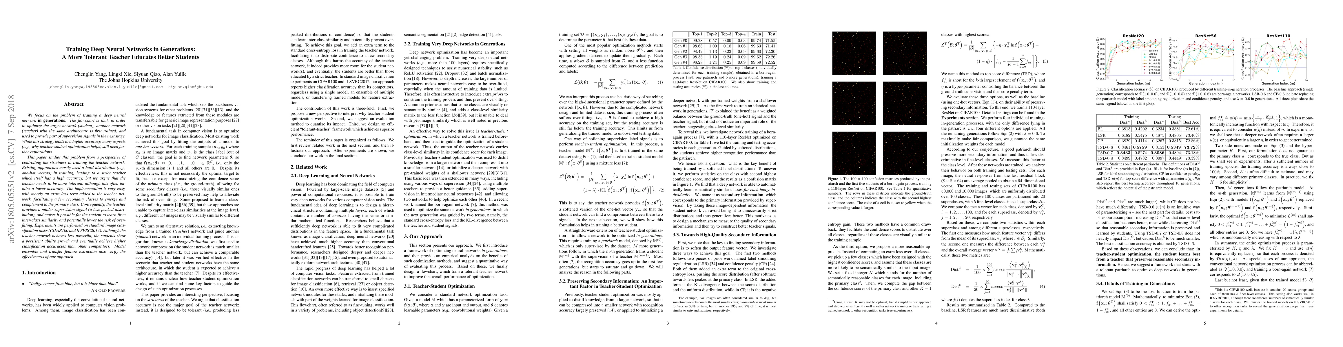 We focus on the problem of training a deep neural network in generations. The flowchart is that, in order to optimize the target network (student), another network (teacher) with the same architecture is first trained, and used to provide part of supervision signals in the next stage. While this strategy leads to a higher accuracy, many aspects (e.g., why teacher-student optimization helps) still need further explorations. This paper studies this problem from a perspective of controlling the strictness in training the teacher network. Existing approaches mostly used a hard distribution (e.g., one-hot vectors) in training, leading to a strict teacher which itself has a high accuracy, but we argue that the teacher needs to be more tolerant, although this often implies a lower accuracy. The implementation is very easy, with merely an extra loss term added to the teacher network, facilitating a few secondary classes to emerge and complement to the primary class. Consequently, the teacher provides a milder supervision signal (a less peaked distribution), and makes it possible for the student to learn from inter-class similarity and potentially lower the risk of over-fitting. Experiments are performed on standard image classification tasks (CIFAR100 and ILSVRC2012). Although the teacher network behaves less powerful, the students show a persistent ability growth and eventually achieve higher classification accuracies than other competitors. Model ensemble and transfer feature extraction also verify the effectiveness of our approach.