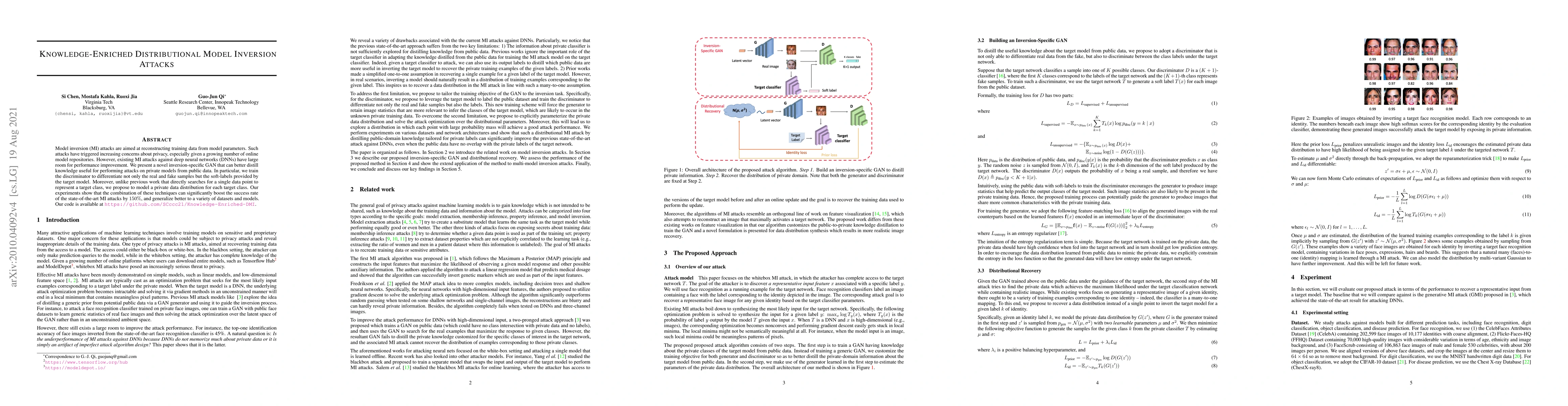 This paper introduces a novel GAN-based approach to enhance model inversion attacks, significantly improving the reconstruction of training data from model parameters. The method models private data distributions for each target class and trains the discriminator to differentiate soft-labels, achieving a 150% boost in attack success rate and better generalization across datasets and models.