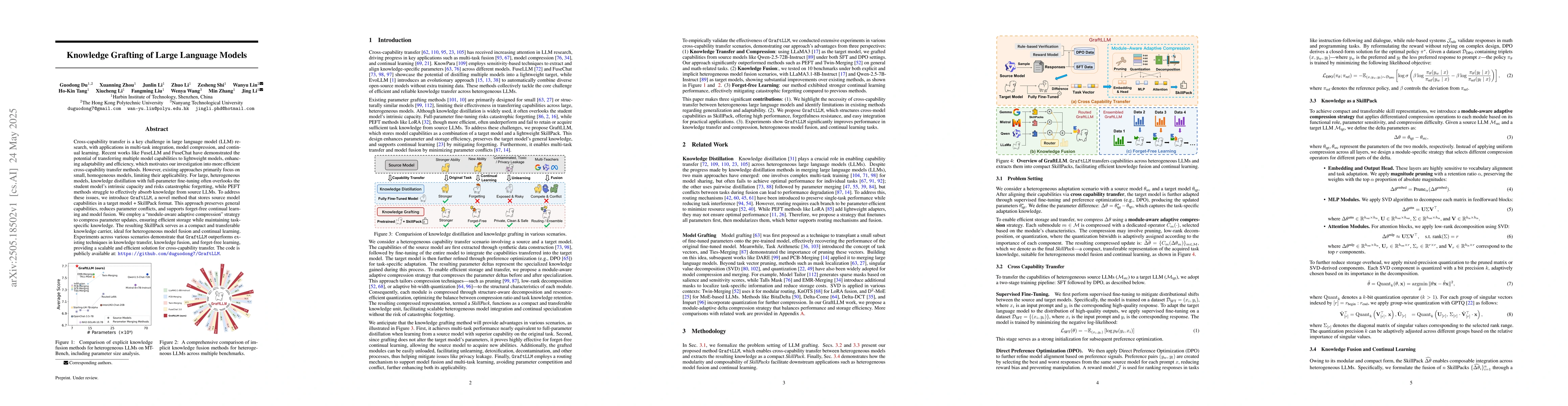 GraftLLM improves cross-capability transfer in large language models by storing source model capabilities in a target model using SkillPack format, enabling efficient knowledge transfer and forget-free continual learning.