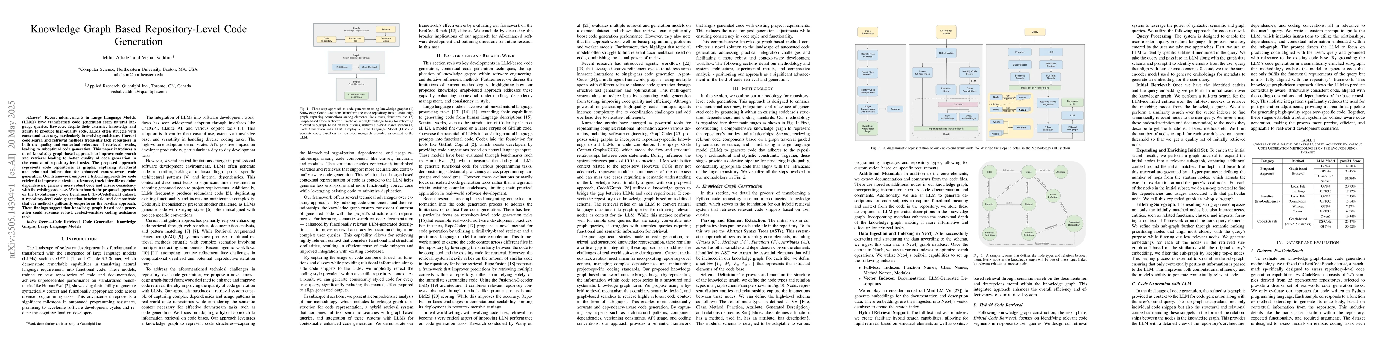 This work stands out by applying knowledge graphs to the repository level of code generation, addressing the contextual accuracy issues in evolving codebases that current LLM-based methods struggle with.