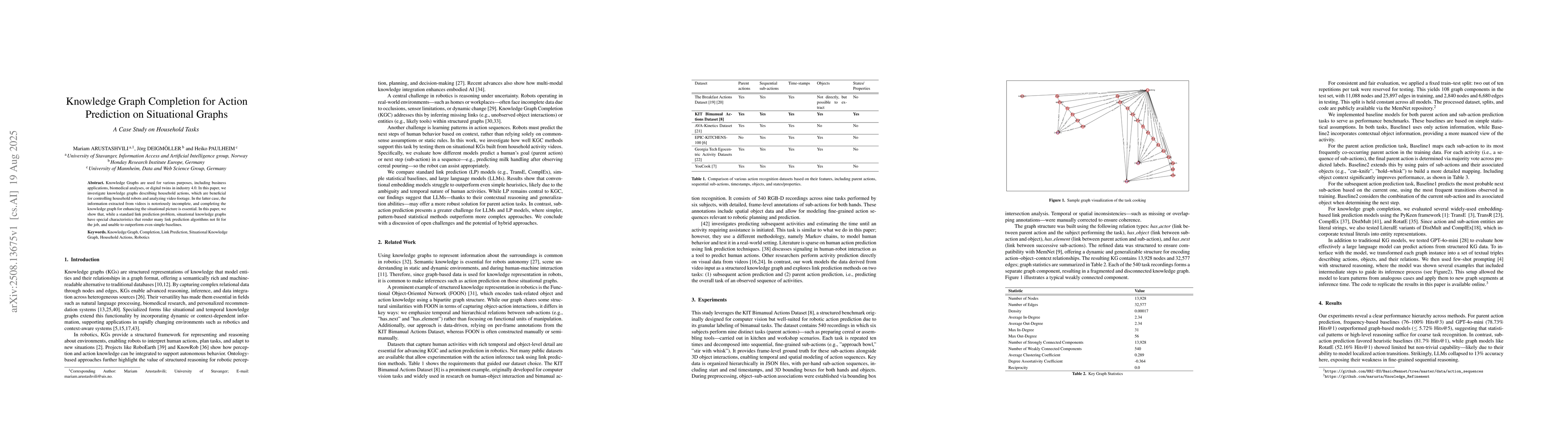 Knowledge Graphs are used for various purposes, including business applications, biomedical analyses, or digital twins in industry 4.0. In this paper, we investigate knowledge graphs describing household actions, which are beneficial for controlling household robots and analyzing video footage. In the latter case, the information extracted from videos is notoriously incomplete, and completing the knowledge graph for enhancing the situational picture is essential. In this paper, we show that, while a standard link prediction problem, situational knowledge graphs have special characteristics that render many link prediction algorithms not fit for the job, and unable to outperform even simple baselines.