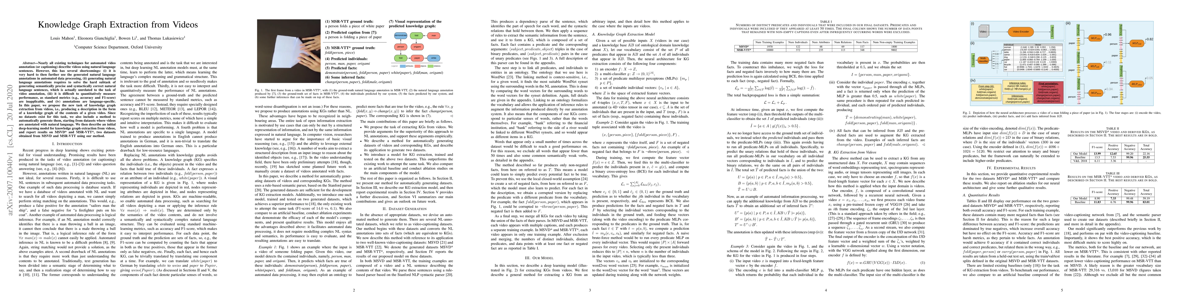 This paper introduces the novel task of knowledge graph extraction from videos to address the limitations of existing natural language video annotation methods. It proposes a deep-learning model for this task and presents a method to generate datasets for training, demonstrating initial results on MSVD and MSR-VTT datasets.