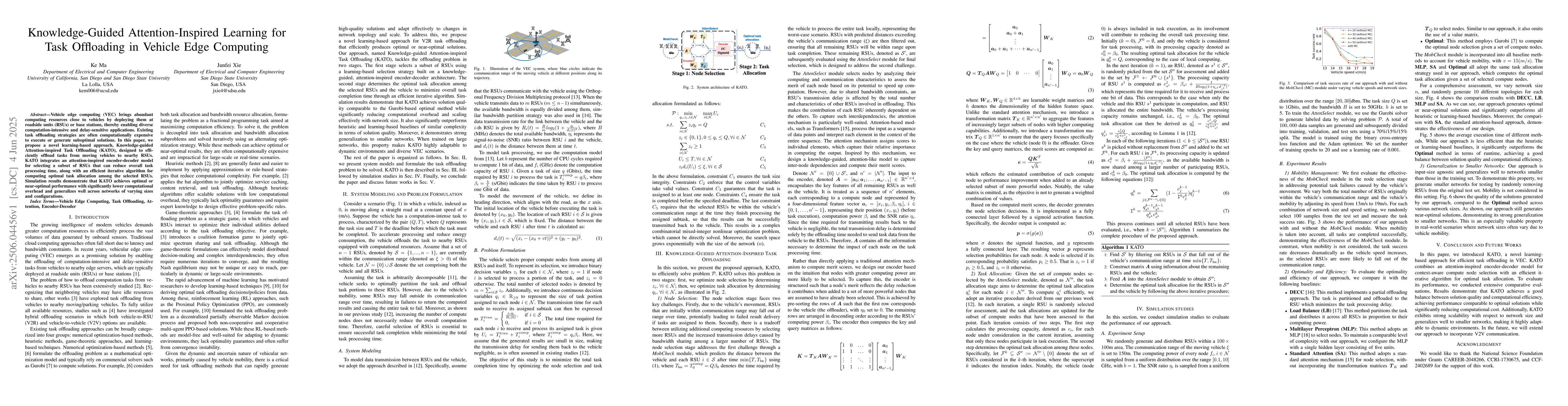 A new learning-based approach called Knowledge-Guided Attention-Inspired Task Offloading (KATO) reduces computational overhead for task offloading in vehicle edge computing, achieving optimal performance with lower costs.