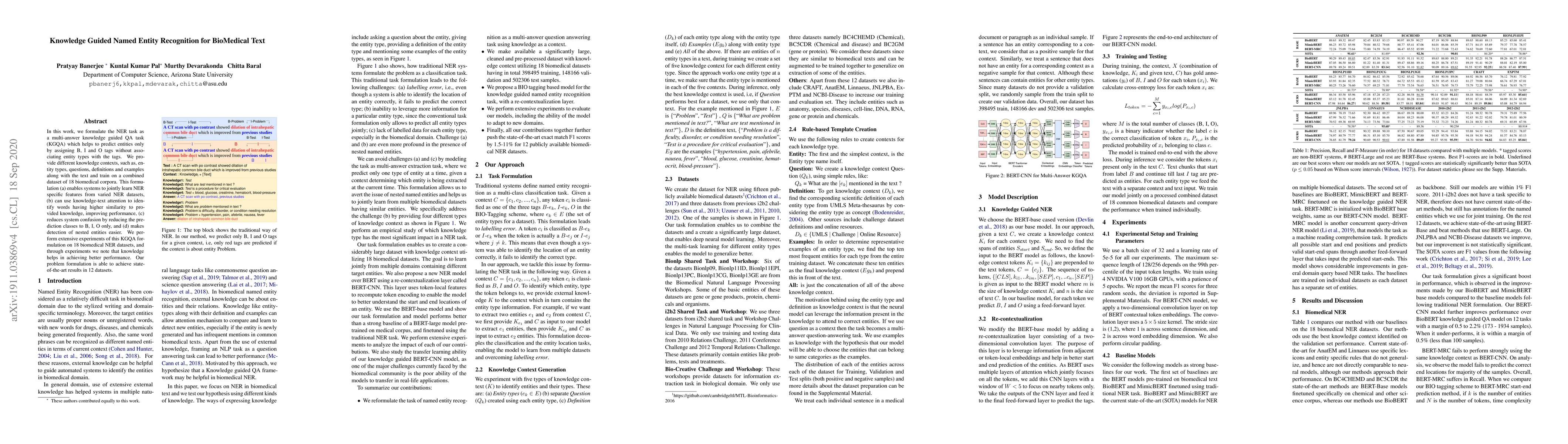 A new approach to named entity recognition (NER) in biomedical text uses knowledge-guided QA, allowing systems to learn from varied NER datasets and improve performance. This method achieves state-of-the-art results in 12 datasets.