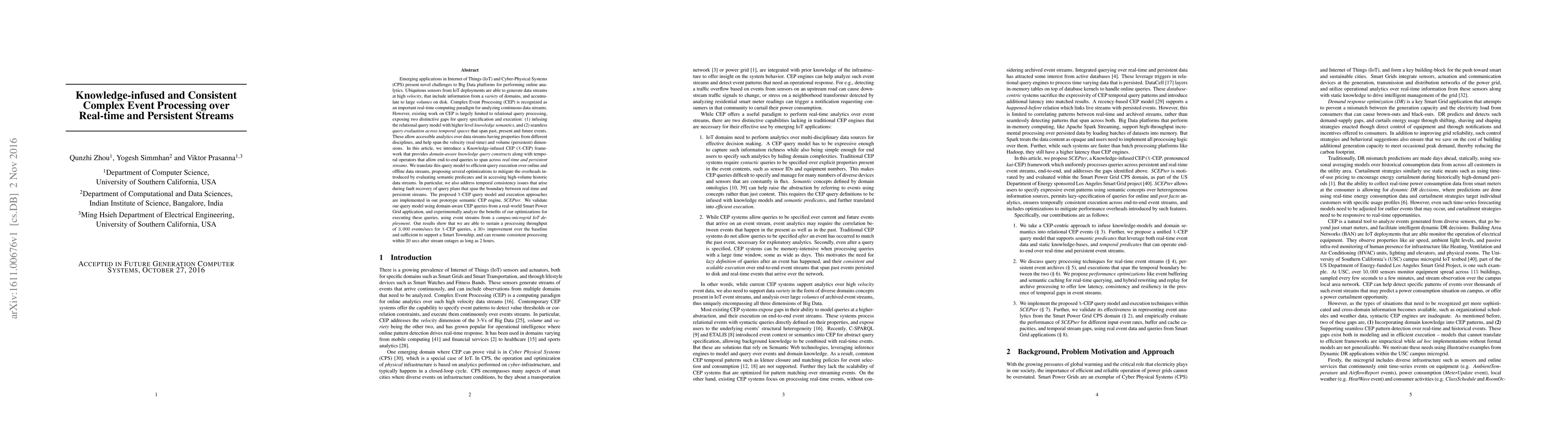 This paper introduces a Knowledge-infused Complex Event Processing (X-CEP) framework that enhances CEP with domain-aware knowledge semantics and temporal operators for seamless query evaluation across real-time and persistent streams. The proposed model and execution strategies are validated through a prototype semantic CEP engine and demonstrated in a Smart Power Grid application.