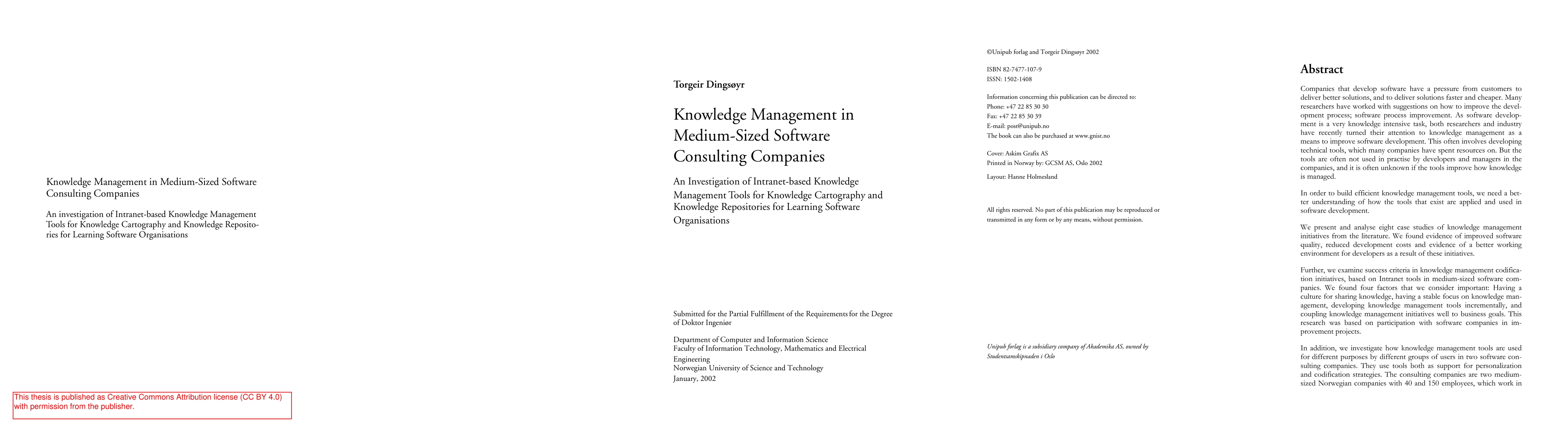 This paper investigates the application of Intranet-based knowledge management tools in medium-sized software consulting companies, finding improved software quality, reduced costs, and better developer environments. It analyzes case studies and explores how these tools support both personalization and codification strategies in two Norwegian firms.