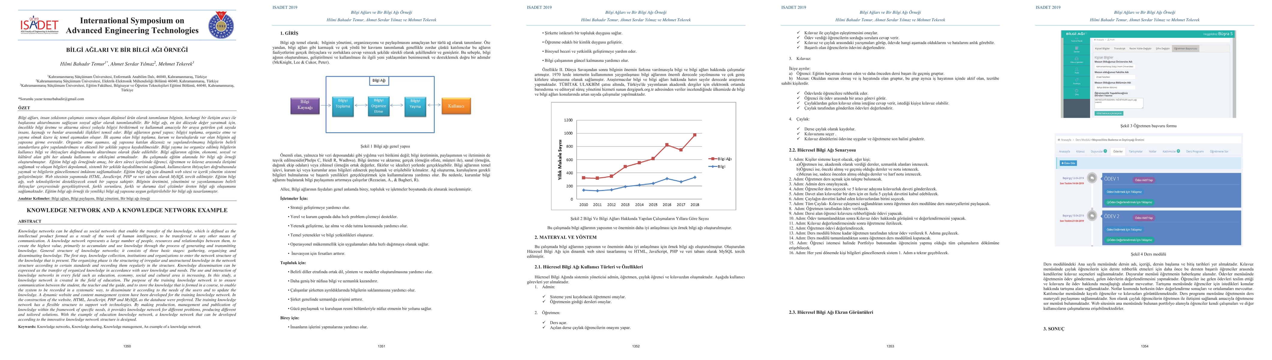 Knowledge networks can be defined as social networks that enable the transfer of the knowledge, which is defined as the intellectual product formed as a result of the work of human intelligence, to be transferred to any other means of communication. A knowledge network represents a large number of people, resources and relationships between them, to create the highest value, primarily to accumulate and use knowledge through the process of generating and transmitting knowledge. General structure of knowledge networks; it consists of three basic stages: gathering, organizing and disseminating knowledge. The first step, knowledge collection, institutions and organizations to enter the network structure of the knowledge that is present. The organizing phase is the structuring of irregular and unstructured knowledge in the network structure according to certain standards and recording them regularly in the structure. Knowledge dissemination can be expressed as the transfer of organized knowledge in accordance with user knowledge and needs. The purpose of the training knowledge network is to ensure communication between the student, the teacher and the guide, and to store the knowledge that is formed in a course, to enable the system to be recorded in a systematic way, to disseminate it according to the needs of the users and to update the knowledge. A dynamic website and content management system have been developed for the training knowledge network. The training knowledge network has a flexible structure to support web technologies. By making production, management and publication of knowledge within the framework of specific needs, it provides knowledge network for different problems, producing different and tailored solutions. With the example of education knowledge network, a knowledge network that can be developed according to the innovative knowledge network structure is designed.