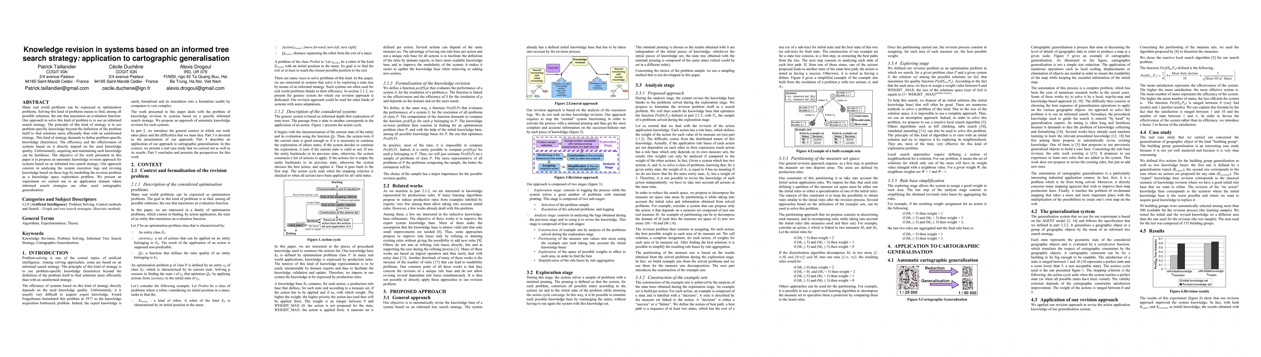Many real world problems can be expressed as optimisation problems. Solving this kind of problems means to find, among all possible solutions, the one that maximises an evaluation function. One approach to solve this kind of problem is to use an informed search strategy. The principle of this kind of strategy is to use problem-specific knowledge beyond the definition of the problem itself to find solutions more efficiently than with an uninformed strategy. This kind of strategy demands to define problem-specific knowledge (heuristics). The efficiency and the effectiveness of systems based on it directly depend on the used knowledge quality. Unfortunately, acquiring and maintaining such knowledge can be fastidious. The objective of the work presented in this paper is to propose an automatic knowledge revision approach for systems based on an informed tree search strategy. Our approach consists in analysing the system execution logs and revising knowledge based on these logs by modelling the revision problem as a knowledge space exploration problem. We present an experiment we carried out in an application domain where informed search strategies are often used: cartographic generalisation.
